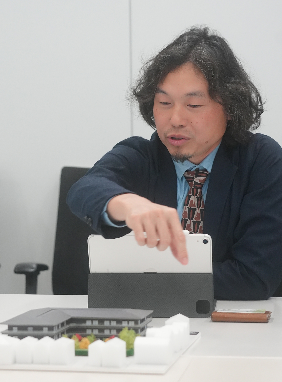 3階に上がっていただくと山がスーっと抜けて見えるかな、とか。そして、また別の場所からは――(模型を指さしながら)北側には植物園があって、この景色が本当に素晴らしかった。