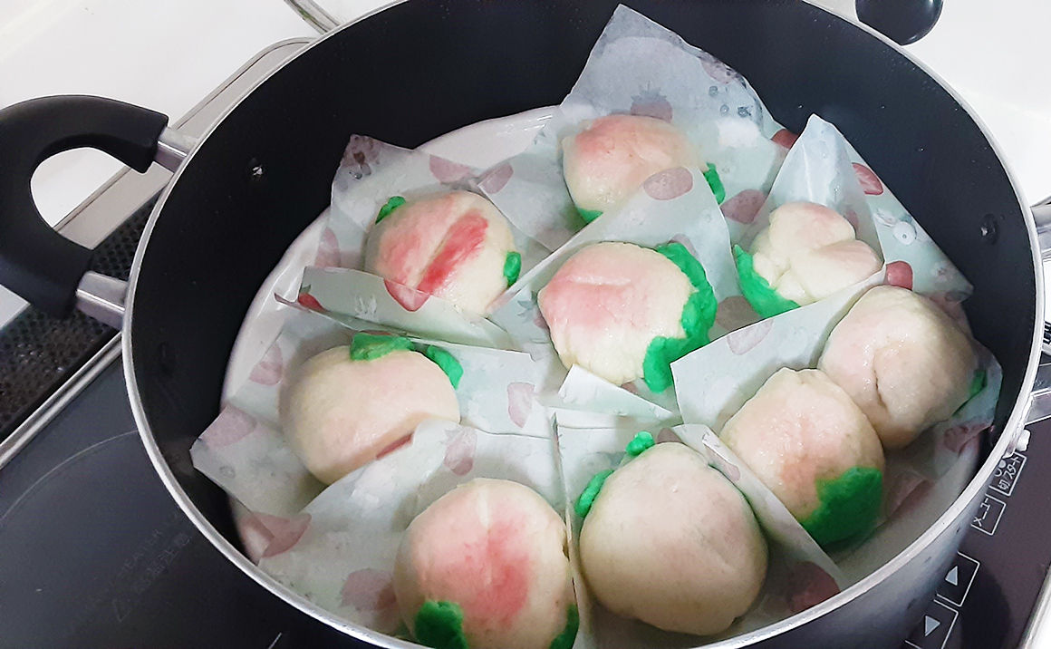 ひな祭りに小規模多機能とグループホームで桃饅頭を作っていただきました。