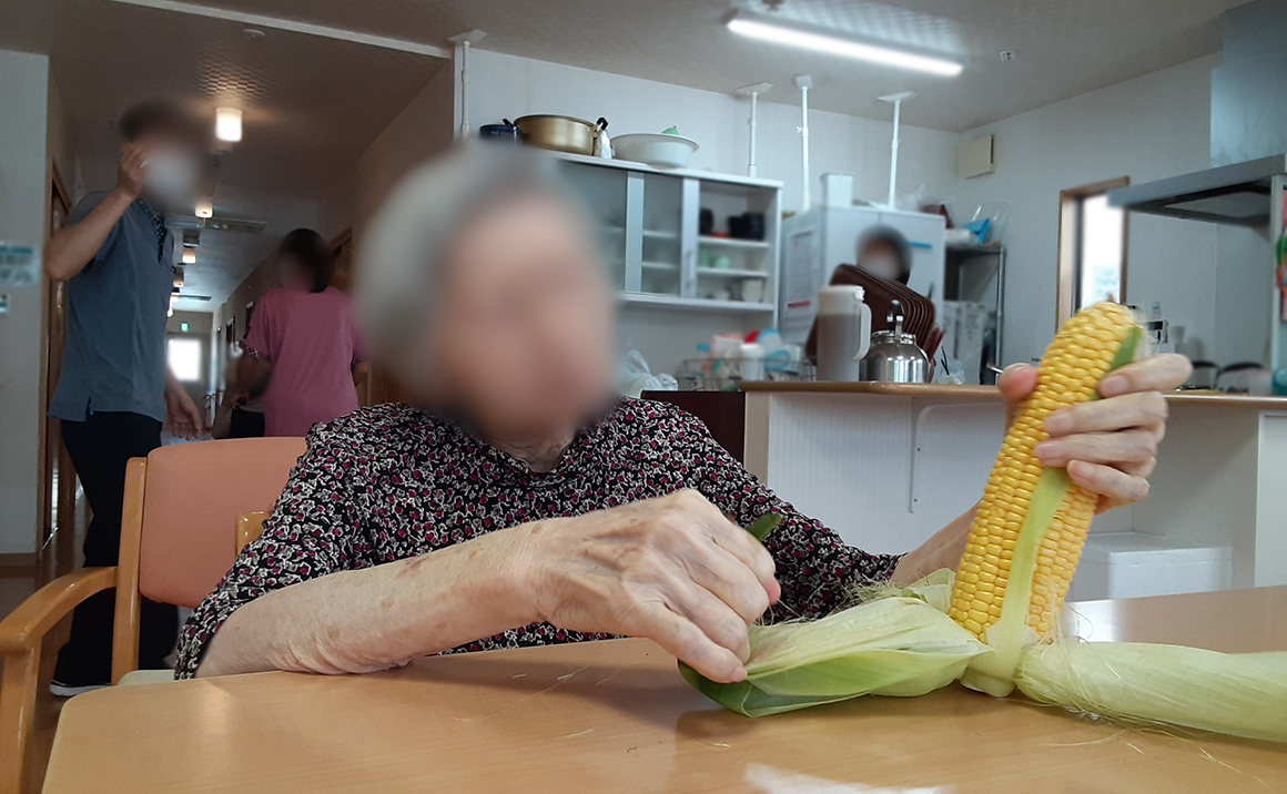 今回は皆さんで焼きトウモロコシを作っていただきました。