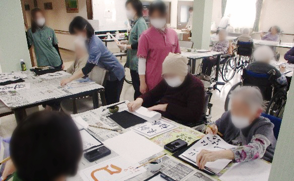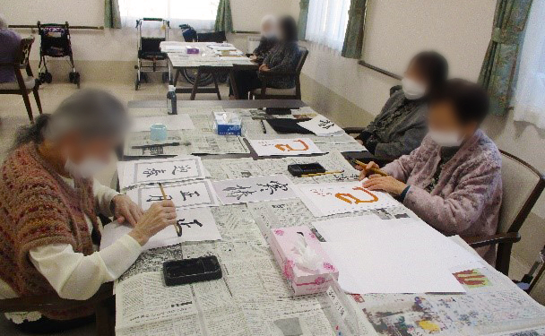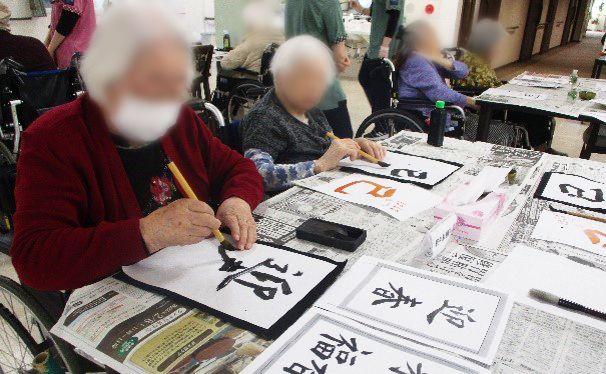 1月3日は、食堂で習字を皆様と行いました♪ その時のご様子をご紹介致します*^^*