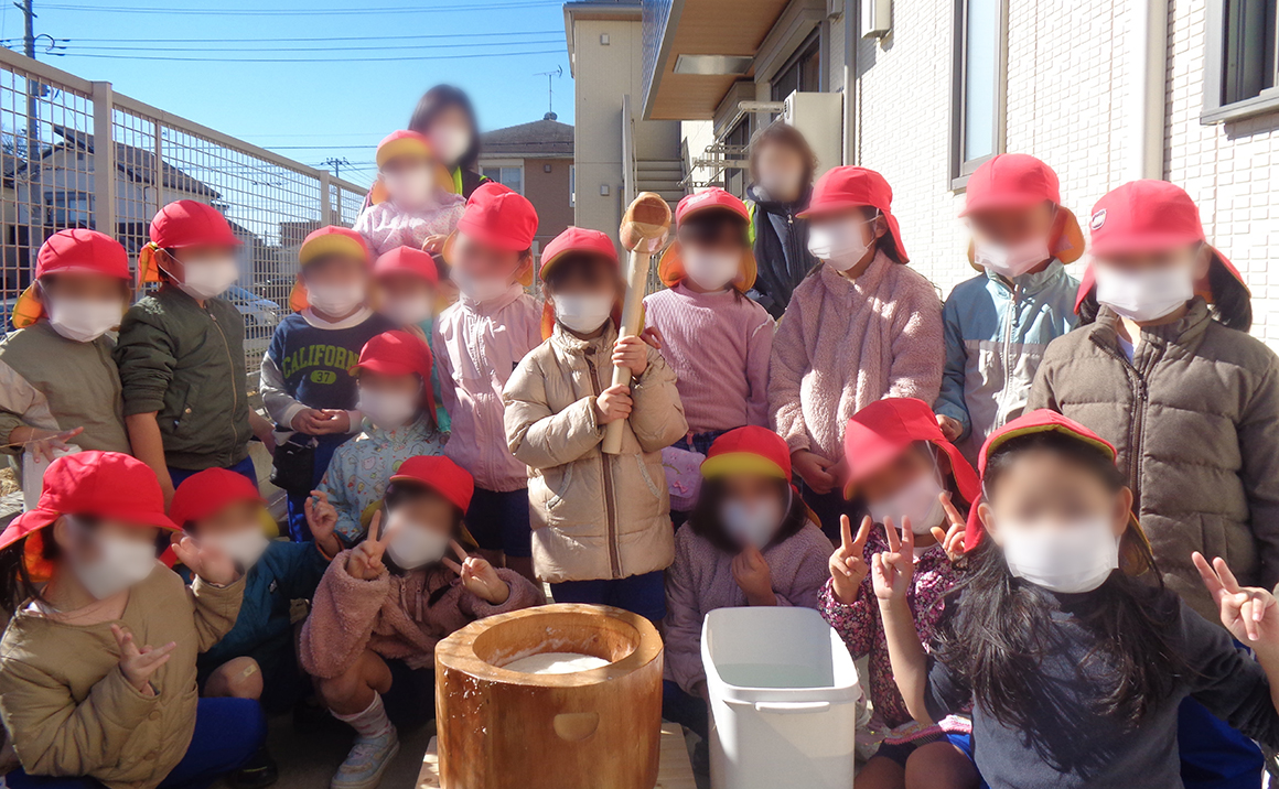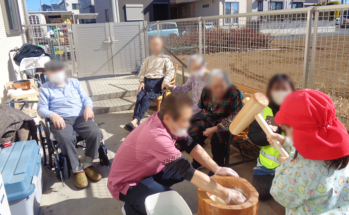 たのしい家南浦和では、近所の保育園児を招いて餅つき大会をしました。