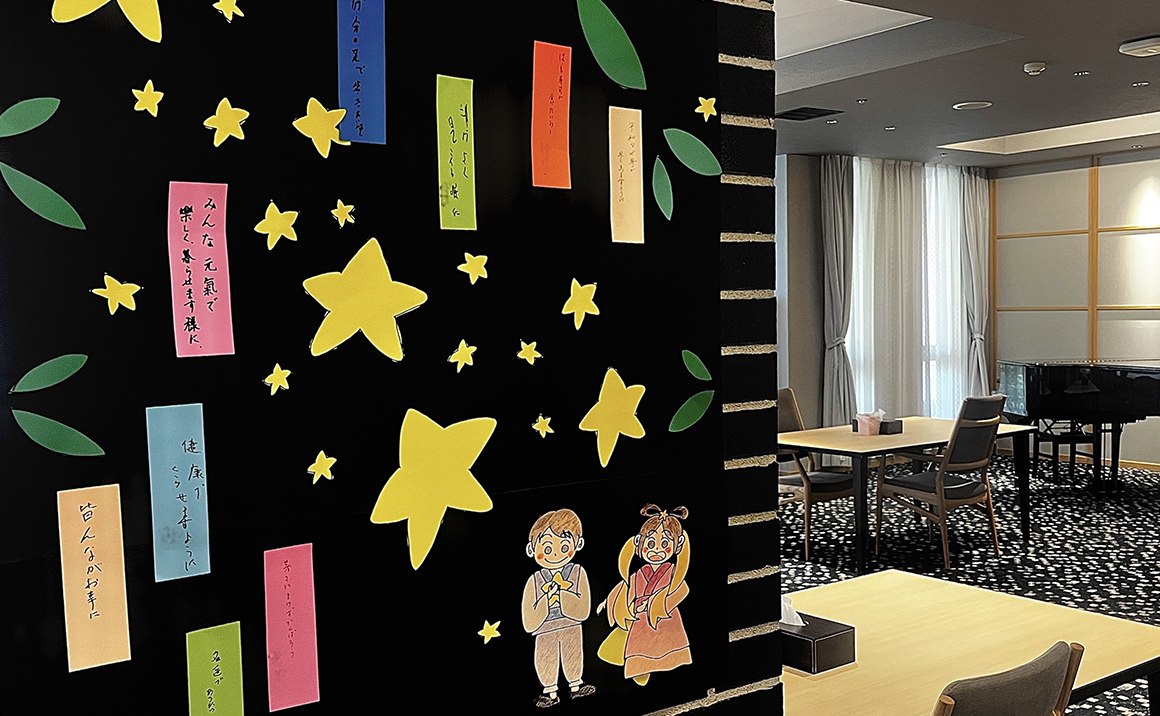 その後は七夕に向けて、ご入居者様に短冊に願い事を書いていただきました。
