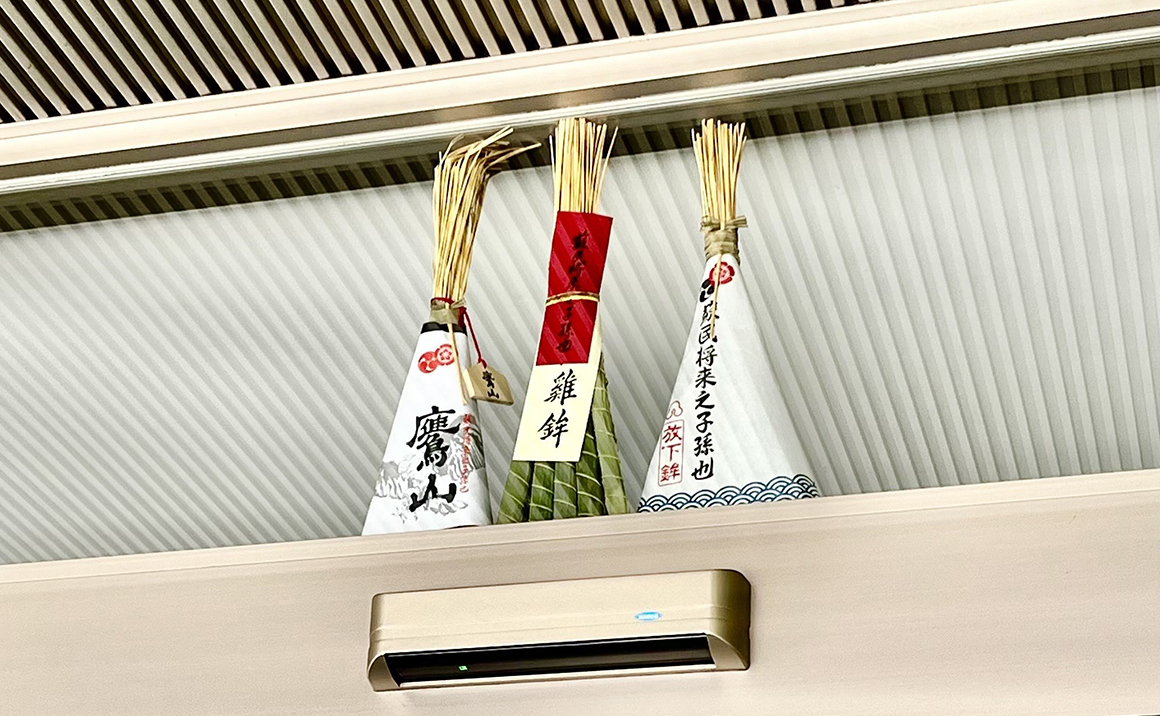 人との縁を結ぶ大切な粽は、正面玄関の上に飾っています。