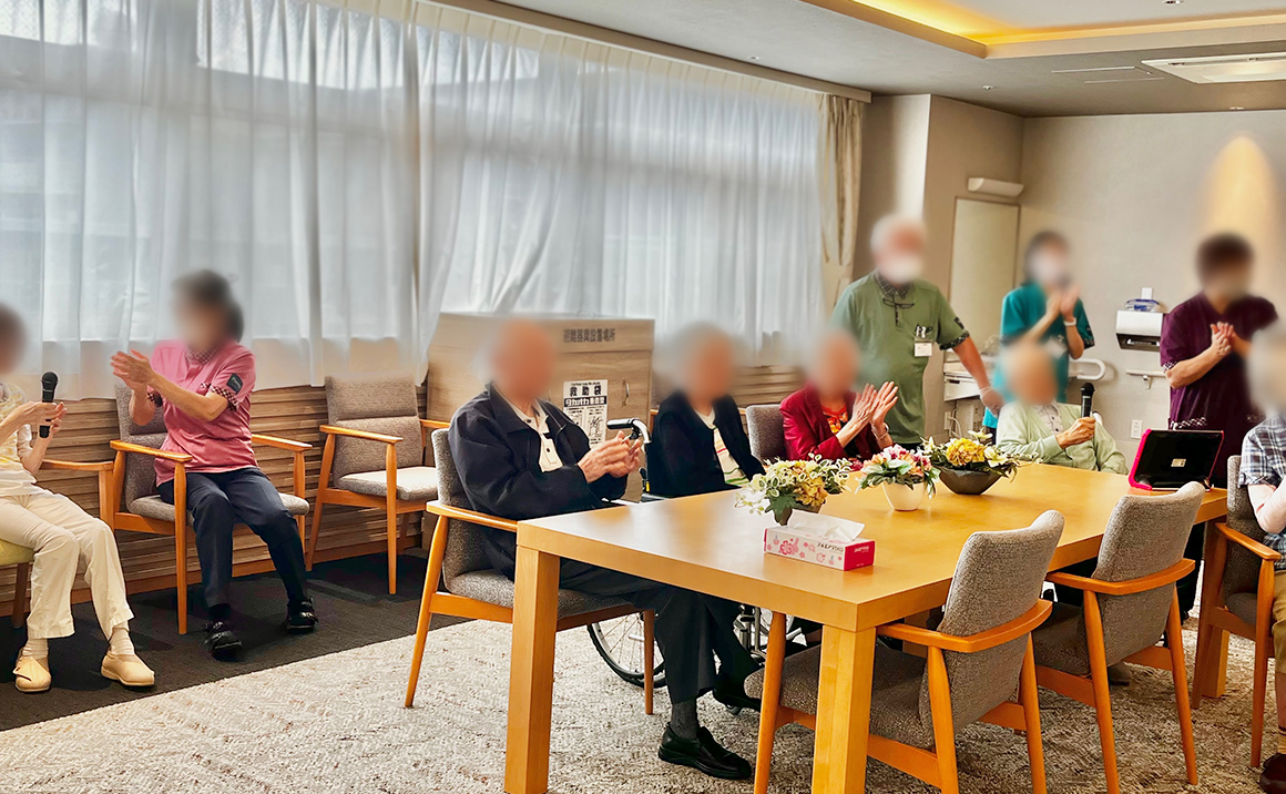 ご入居者様の年代もバラバラですが 「どこかで聞いたことある」「これ知ってるわ」など 交流されながら、とっても盛り上がっていました。