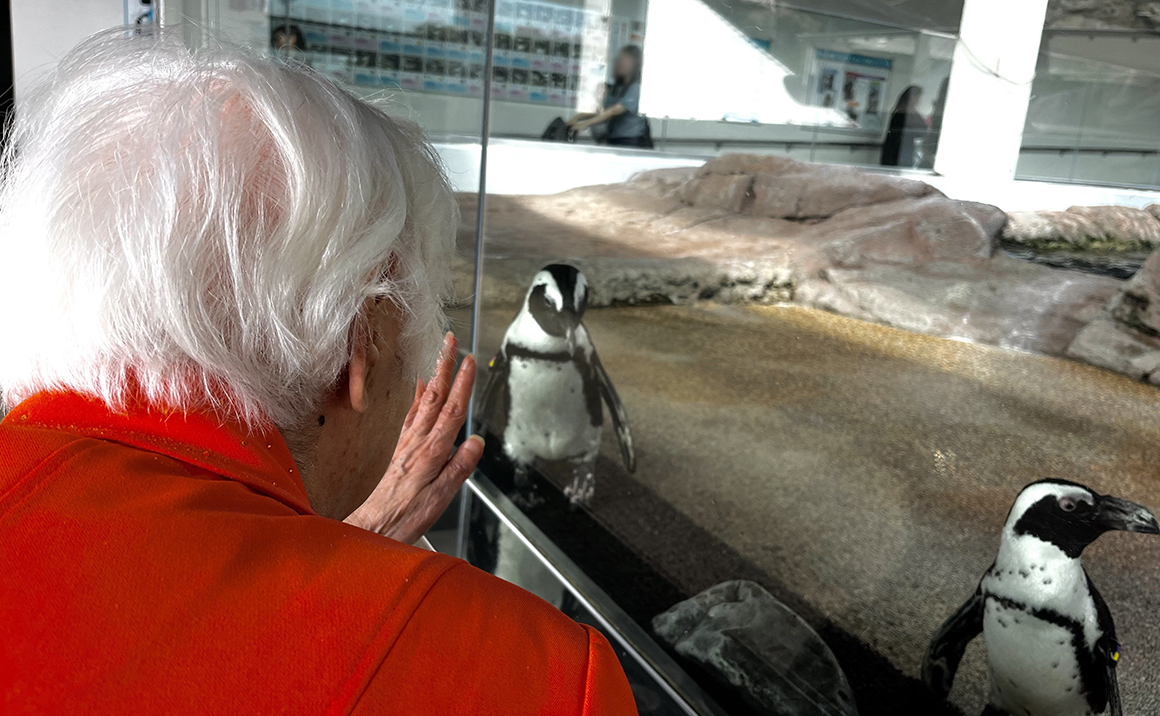 ペンギンコーナーでは近付いてきたペンギンに手を振られたり