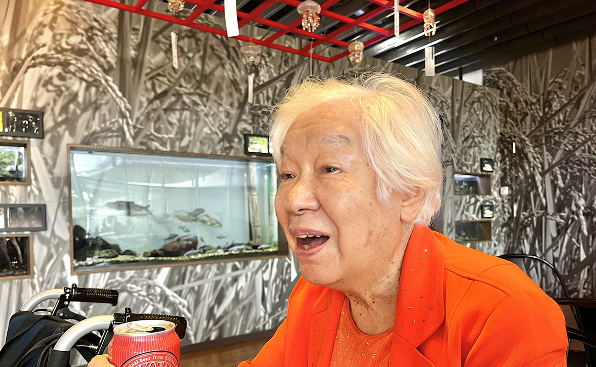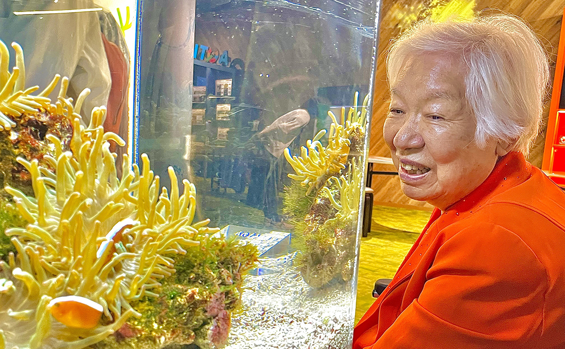 熱帯魚コーナーでは、色鮮やかな魚を笑顔で眺められていました。