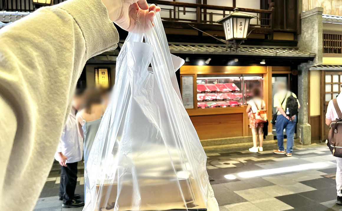 お弁当を受け取りに行くと、寺町商店街にある三嶋亭本店の前には