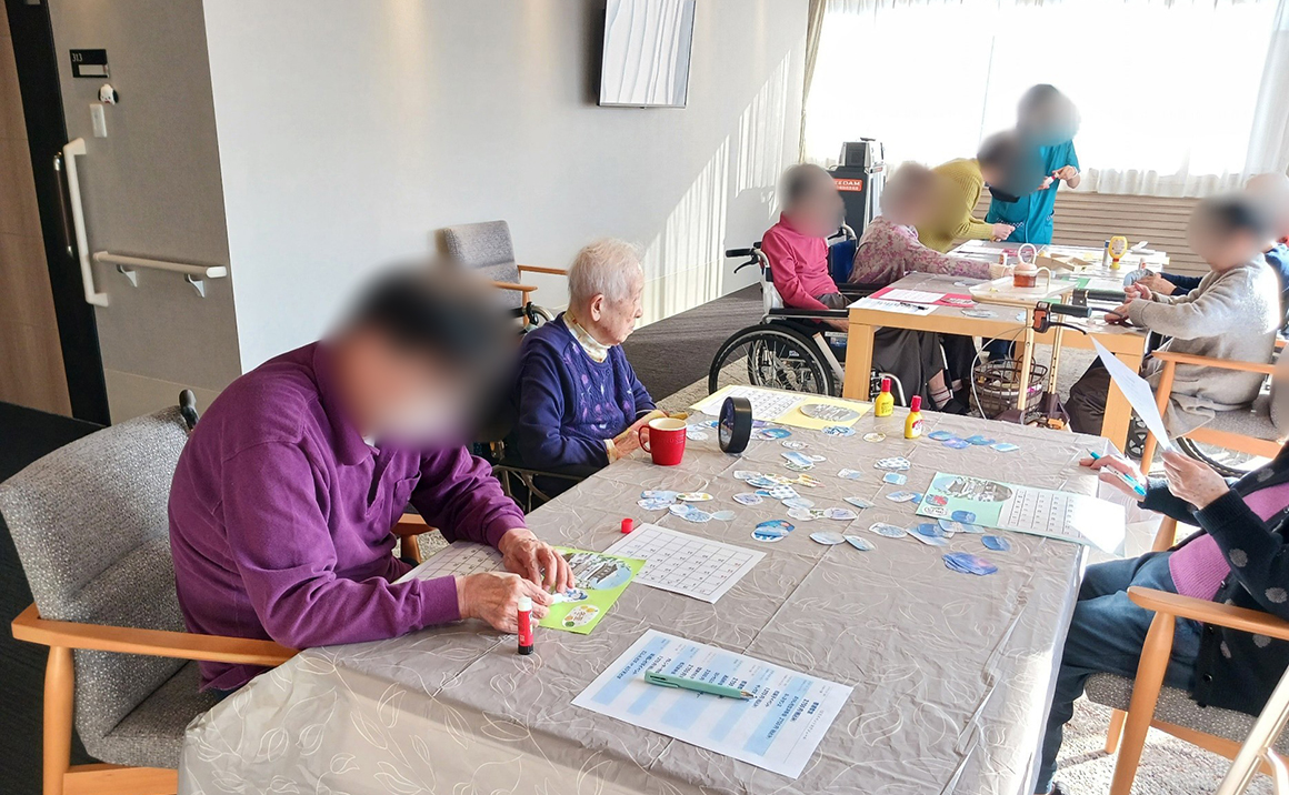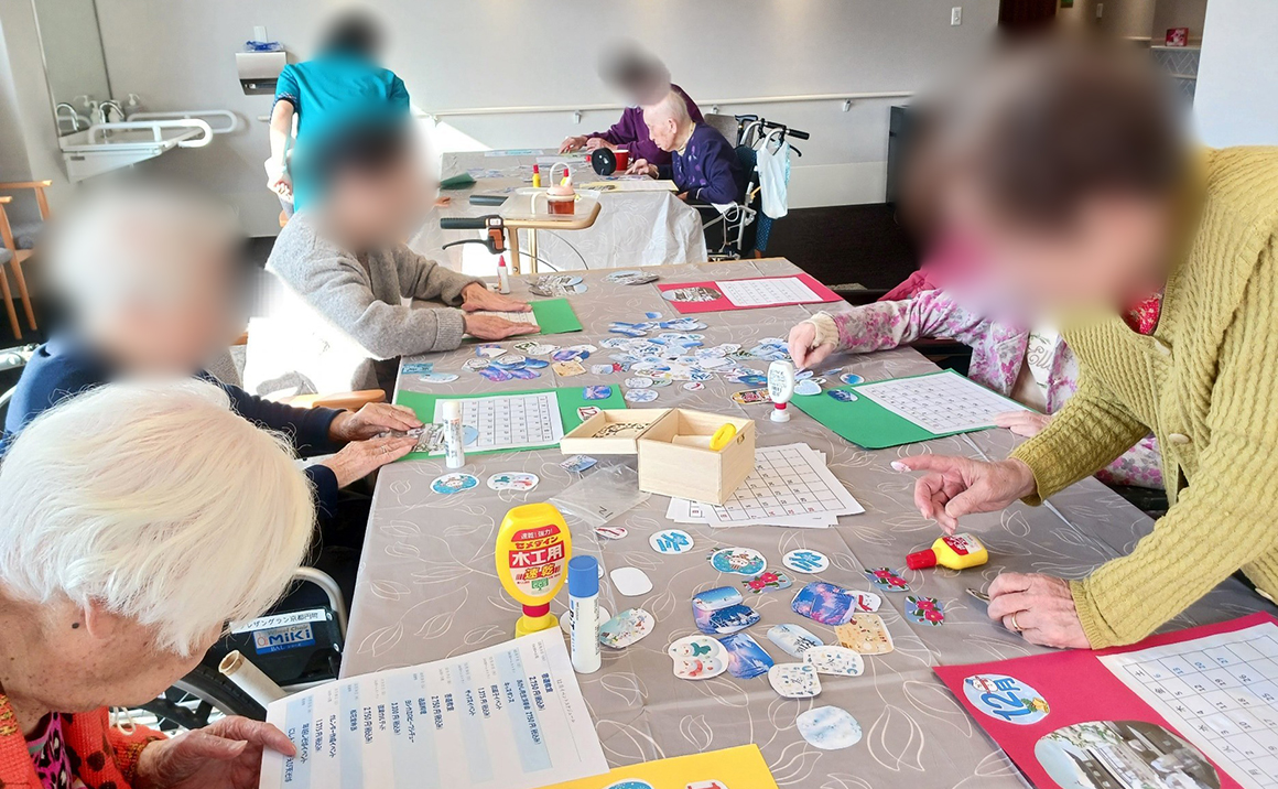 ご入居様からは「このイラスト可愛いですね!「これは何の絵なんです?」「これはどこに貼れば映えるかしら?」など皆様楽しそうにご自身で選ばれたりスタッフと相談されながら カレンダー作りをされて12月の予定を記載されておられました。