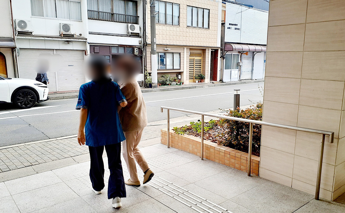 施設の中で平らな絨毯の上を歩くのと違って、外歩きではたくさんのことに注意を払う必要があり、