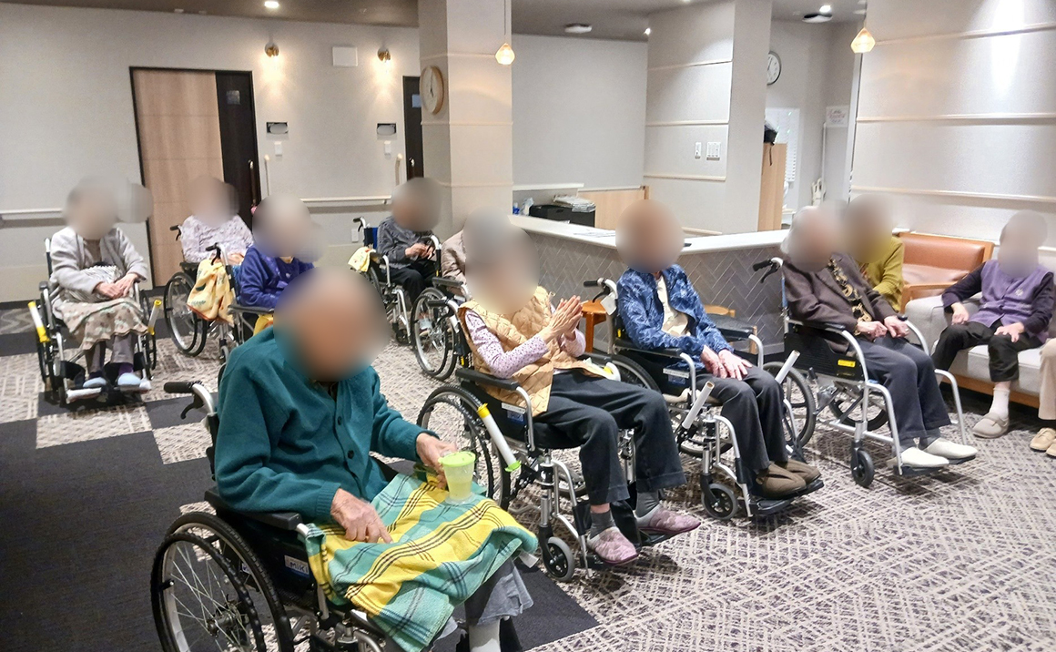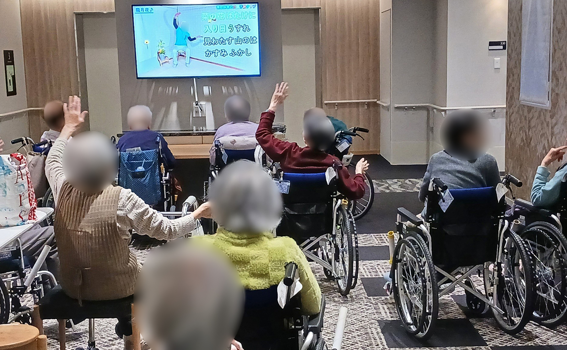皆様、上半身を動かされたり、足踏みをされたり積極的に動かれた後「良い運動しました」「お腹が空いた」「早くご飯に行きましょう」