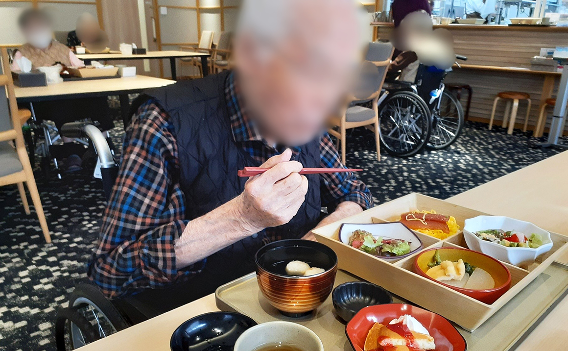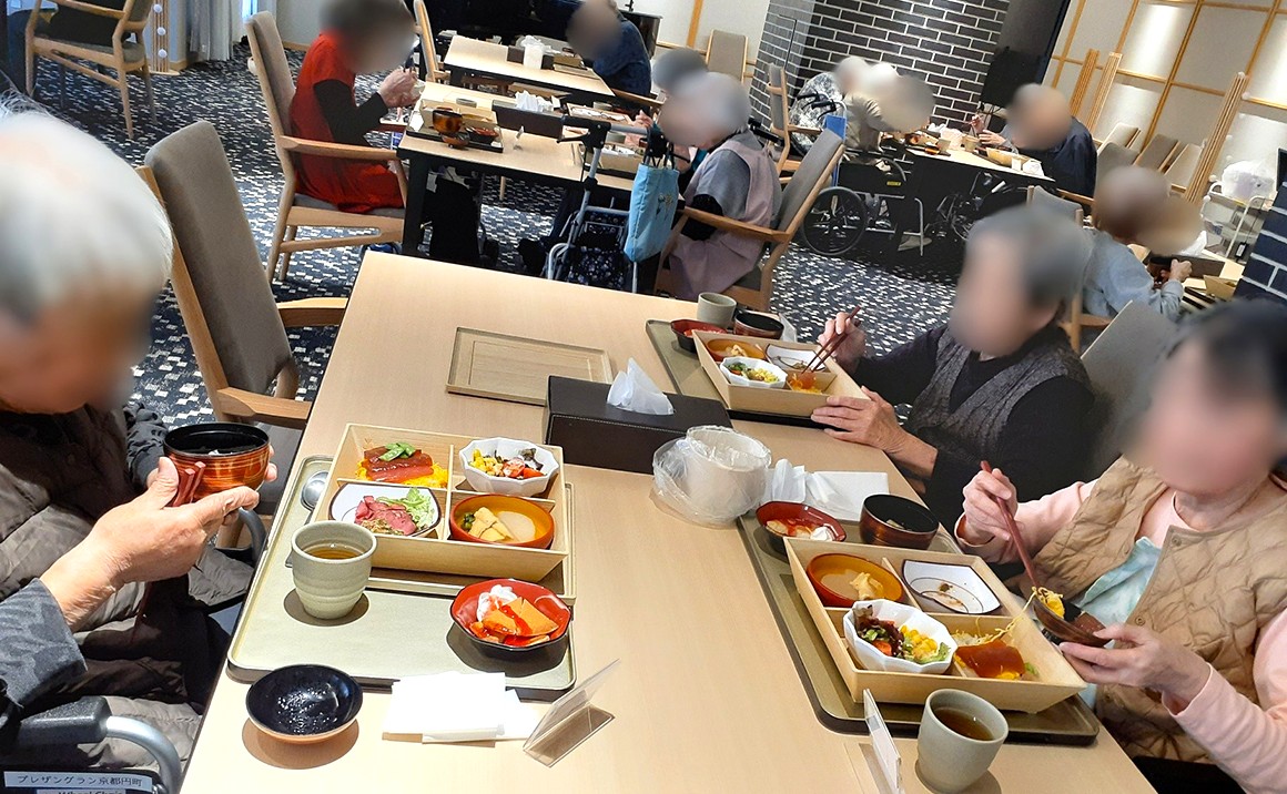 ご入居者様達は「わぁ豪勢!」「今日は何かのお祝い?」と笑顔で仰り、 『大根と京揚げの炊いたん』は「味がしみてて美味しいわ」と大変好評でした。
