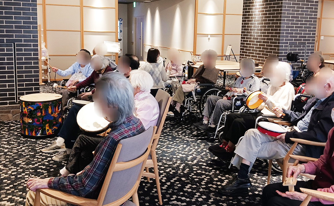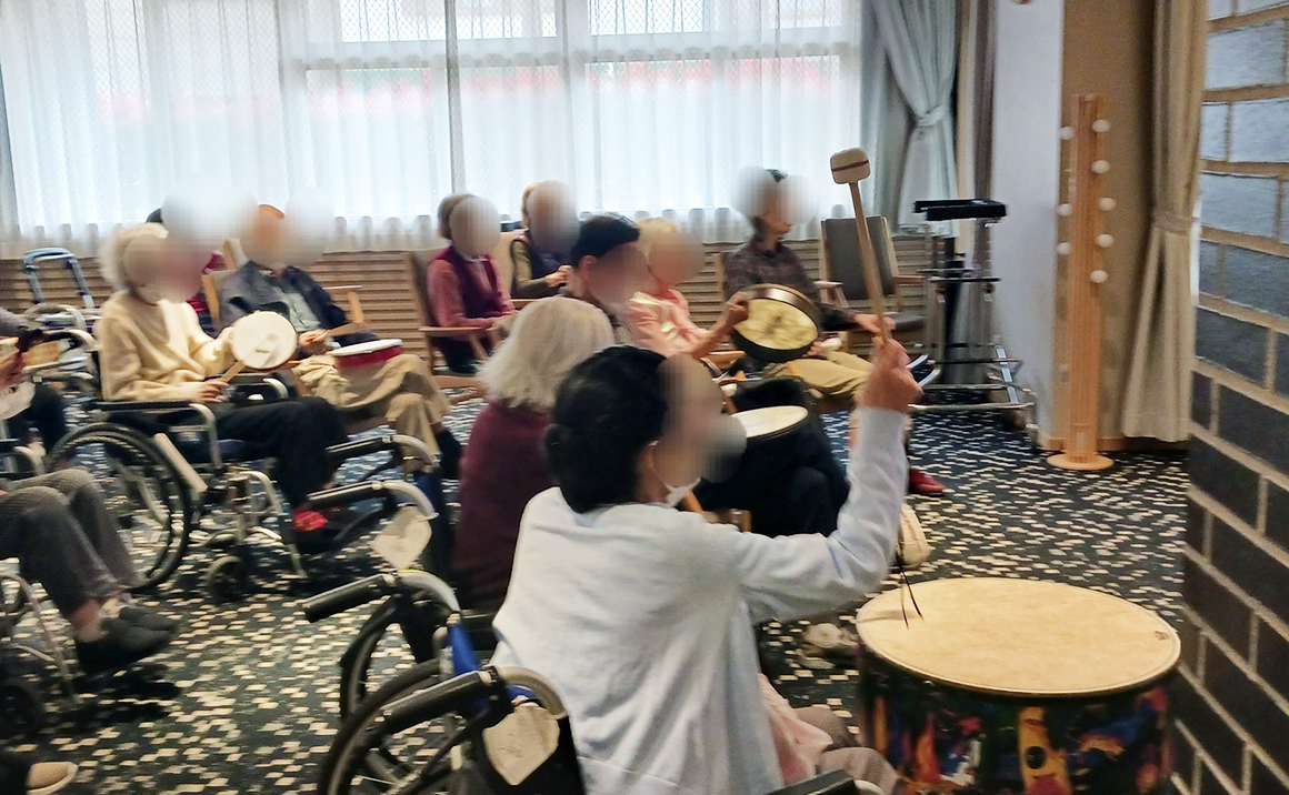 身体もほぐれたときに色々な楽器の演奏をしていただき、 皆様、アドリブであるにもかかわらずピアノに合わせてリズムをとられ大演奏になりました。