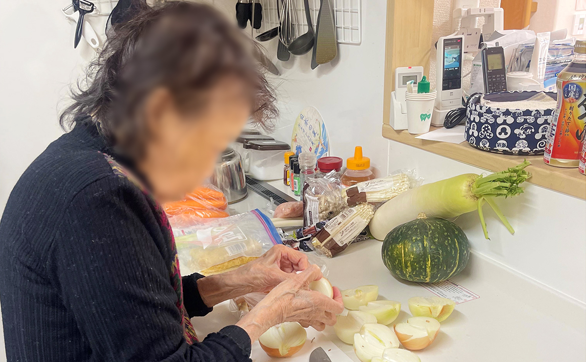 そこでたのしい家戸田ではお正月準備として生野菜を皆でカットして冷凍保存の作業を行なっています。