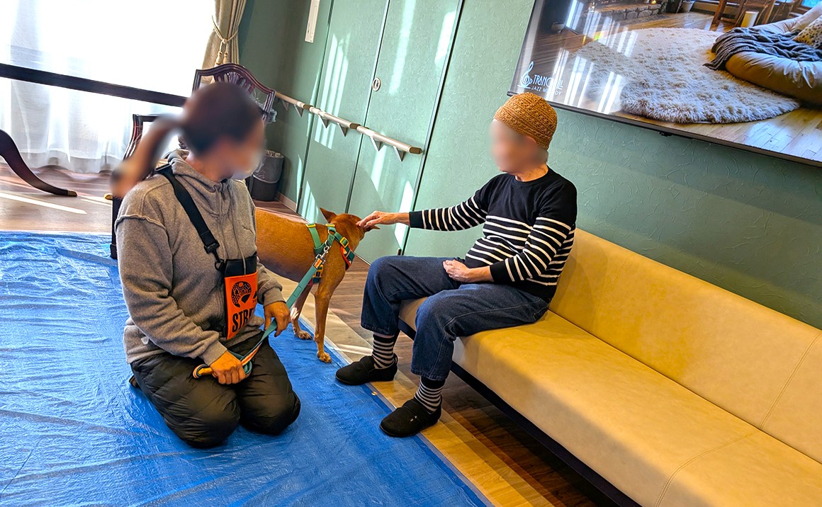 今日は施設にドッグセラピーの「ゆず吉」君が遊びに来てくれました 今回は2Fフロアと1Fフロアにご入居者様が対象です ゆず吉君と記念写真を撮ったり、触ってやさしく話かけたりして癒されます 施設にセラピー犬が来ることはご入居者様だけでなくご面会の方や職員も癒されます 施設全体が温かい雰囲気に包まれます 12月は13日・27日にドッグセラピーが開催されます ご面会の際には是非セラピー犬と会ってみてください