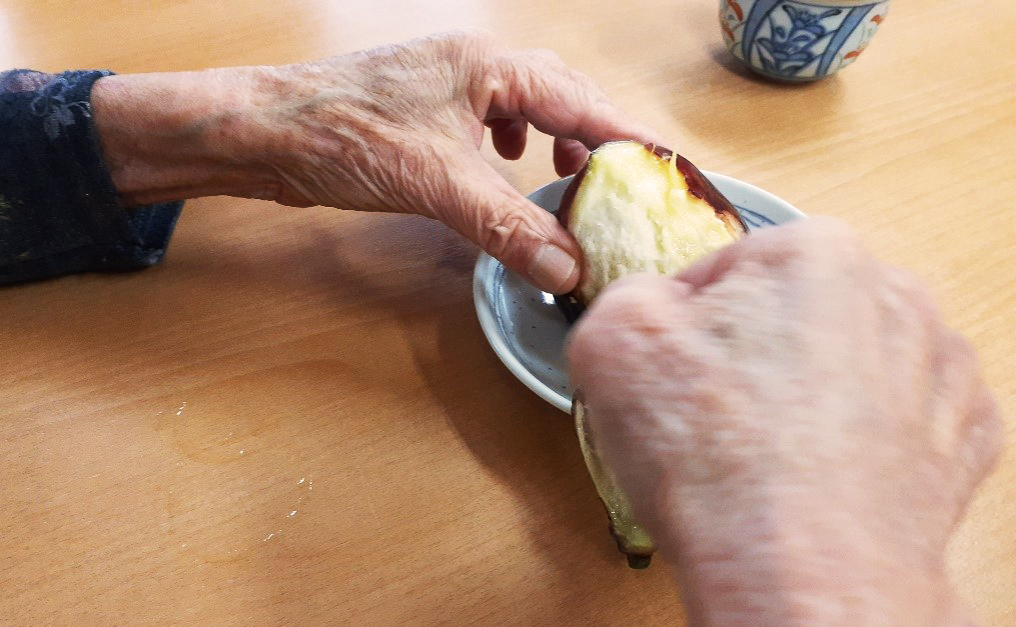 ご近所の八百屋さんに「これで今年はスイカが終売ですよ」と聞いたので買ってみんなで食べました。 スイカは皆さま大好きで冷やしてお出しするとペロッと食べて下さいます。 お茶やお水をあまり飲まない方の脱水予防にとても助かりました。 季節が進みイチジクが旬です。これまた皆さま大好きで自分でむいてきれいに食べられます。 「家の庭にあってね」と毎回昔話が盛り上がります。 心配した台風が通り過ぎまだまだ暑いですが、それでもゆっくり秋が始まっています。