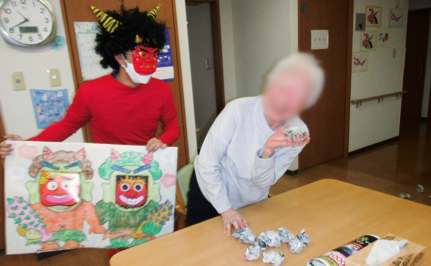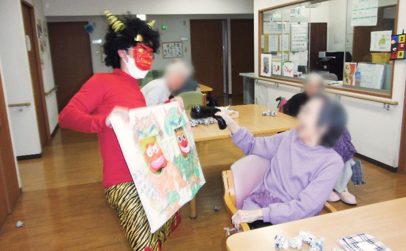 あっと言う間にお正月が終わり寒い日々が続きます。 それでも暦の上では季節の変わり目、節分がやってきました。 今年は2日。年によって日付が変わったら鬼さんも出勤日を間違えないのかと気がかりでしたがきちんと来てくれました。 入居者様も怖がるどころか大笑いです。 夕食には巻きずしを食べ、春まであと少しです。