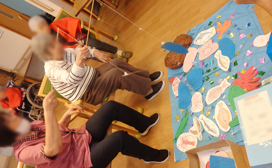 10月になっても今年は暑い日が続いております。 今年も秋祭りを実施しました。輪投げ・ヨーヨー釣り・ボウリング・魚釣りを用意させていただきました♪ 皆様楽しんで頂き、運動後はボランティアの手品師の方に来ていただきマジックを披露してくれました♠♣画像がエラーで取り出せませんでしたが…