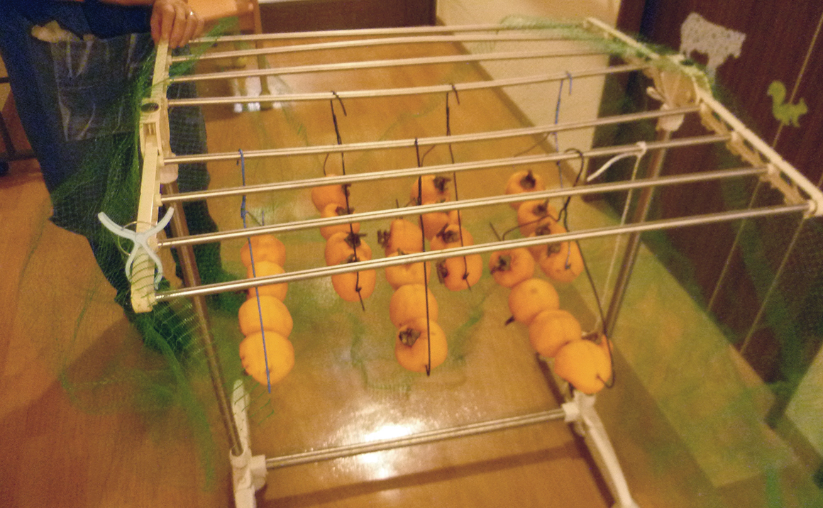 昨年は、2個ずつ紐でくくって干すことをしていたのですが