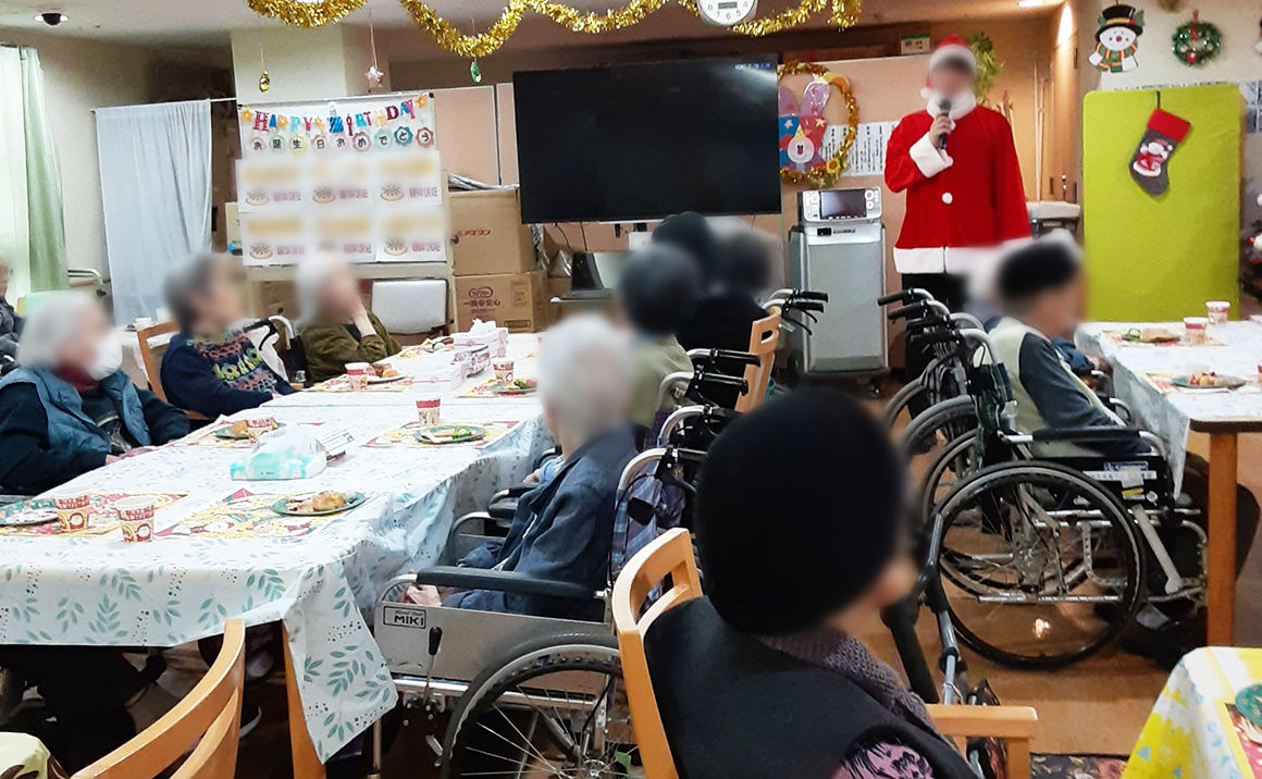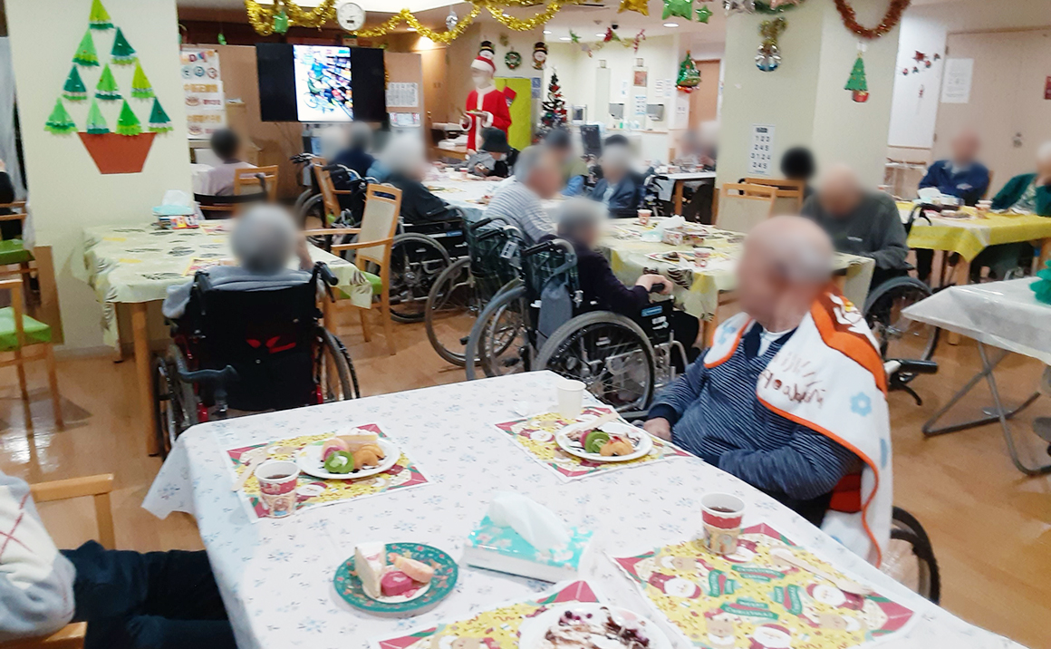 12月22日(日)の午後ににクリスマス会を開催しました。 スタッフは午前中からクリスマスのコスチュームを着て、午後のクリスマス会を盛り上げてくれました(^^♪ ケーキバイキングでは、色々な種類のケーキや和菓子をあれもこれもと召し上がりながら、今年1年の思い出の写真と動画をご覧頂き楽しんでいただきましたo(〃^▽^〃)o