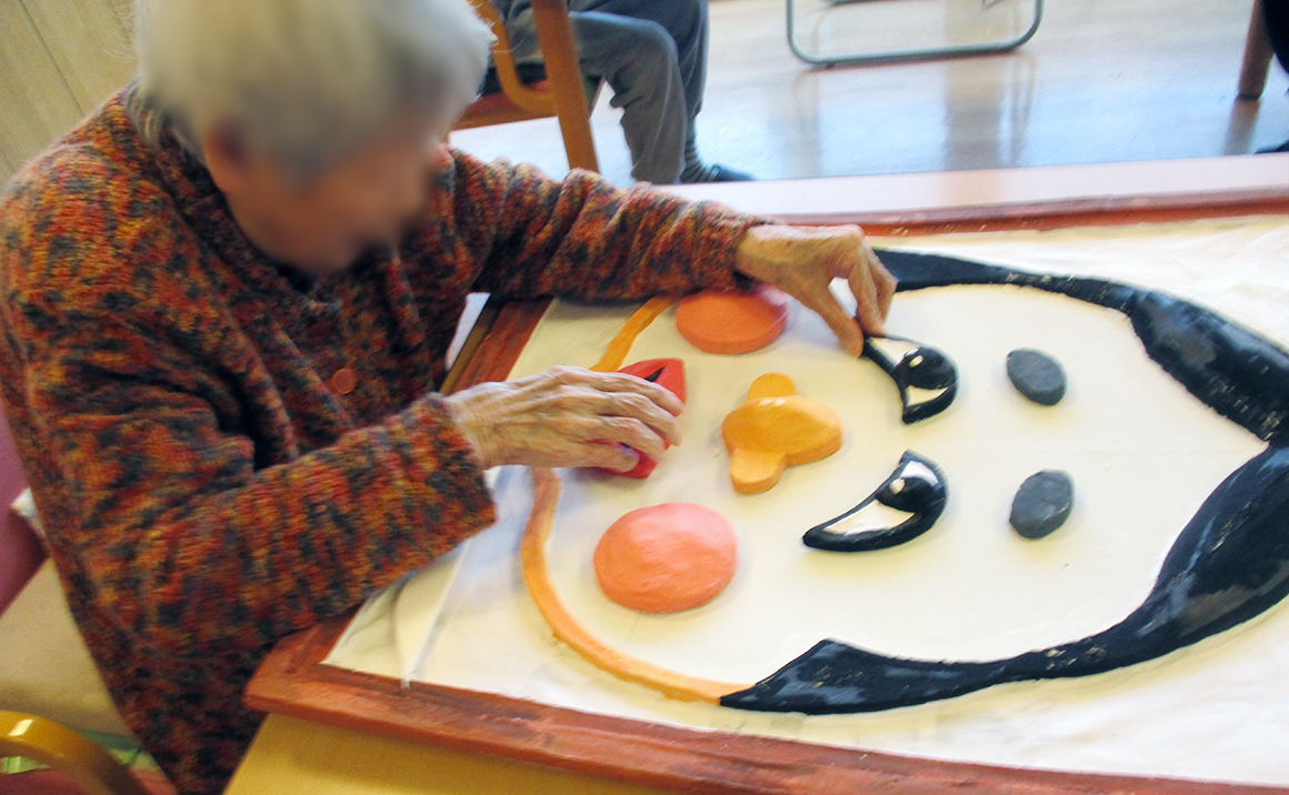 レクリエーションでは、職員が夜なべして作った福笑いをしました。とてもクオリティーが高いですね!
