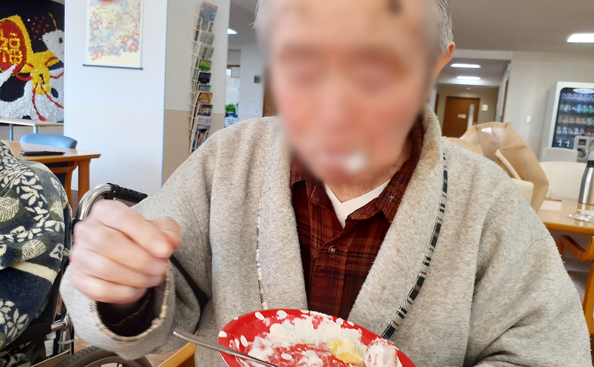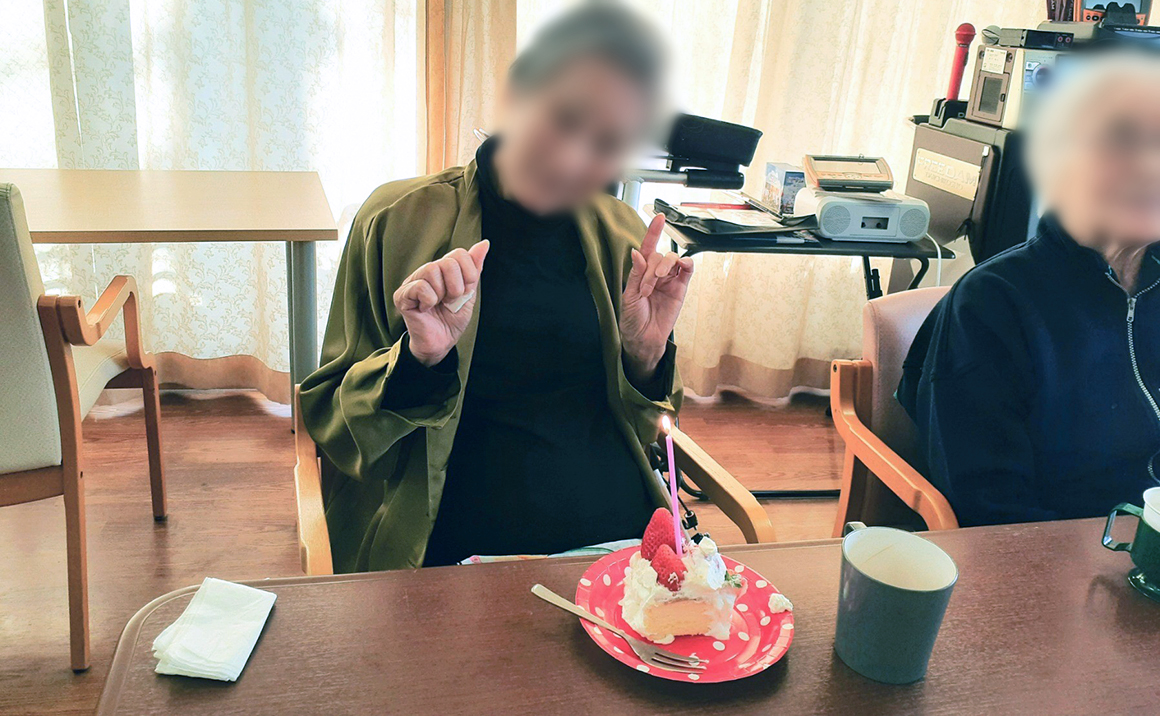 1月生まれの方に集まっていただき、お誕生日ケーキのお披露目! 目の前でケーキを切り分け、ろうそくを立ててお一人づつ吹き消していただきました♪ ケーキもぺろりと召し上がって下さり、とっても嬉しかったです!