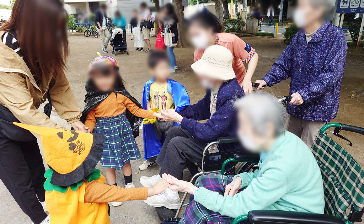 10月のたのしい家上板橋では、近所の公園で行われた仮装イベントに行きました。 子供から大人まで仮装されて盛り上がっていました。 仮装はしませんでしたが、参加された方々と一緒に楽しい時間を過ごされました。 子供たちと楽しそうに会話をされていて参加出来て良かったです。 今後も地域のイベントに参加して行きたいと思います。