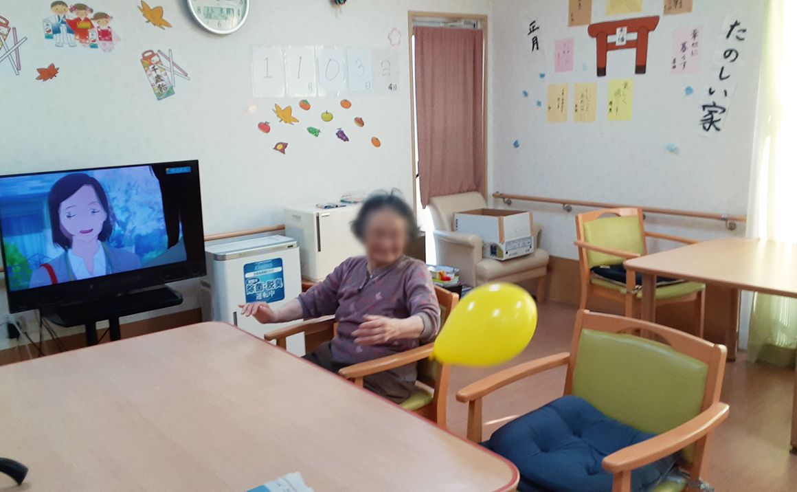 今月も開催されました、風船バレー大会。 今回、風船が二色ありますが別日ではありません。 風船二つで離れた席までラリーを続けておりました。 複数あることですぐにうちかえさなければいけない緊迫感に盛り上がり、途中から参加される方もいました。