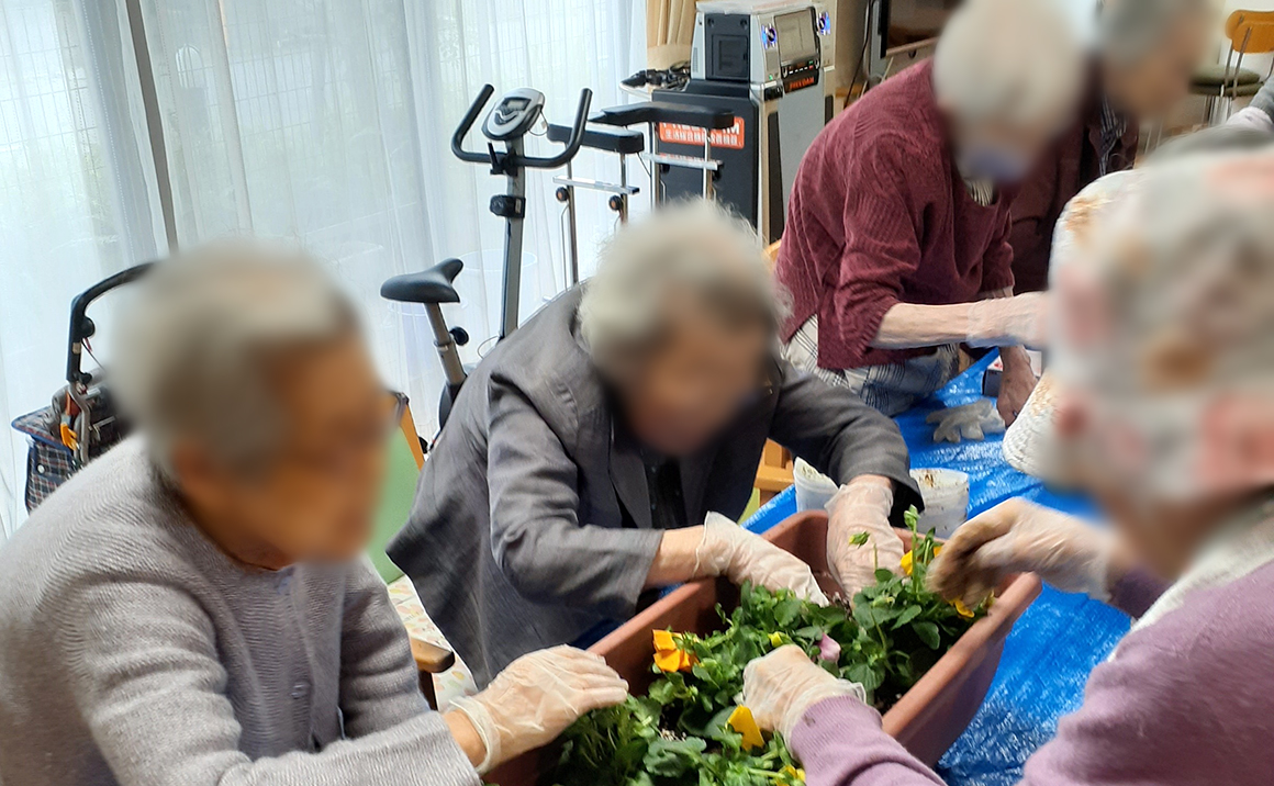 師走を迎え、寒さも厳しくなってまいりましたが皆様いかがお過ごしでしょうか。 プレザンメゾン下新庄では12月8日にガーデニングレクを開催しました! 楽しげにお話されながらお花を植木鉢に植え替えられ、和気あいあいとした雰囲気で皆さま楽しまれました。
