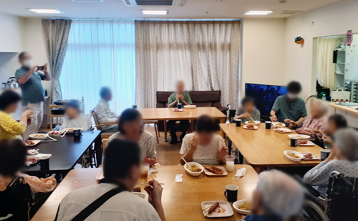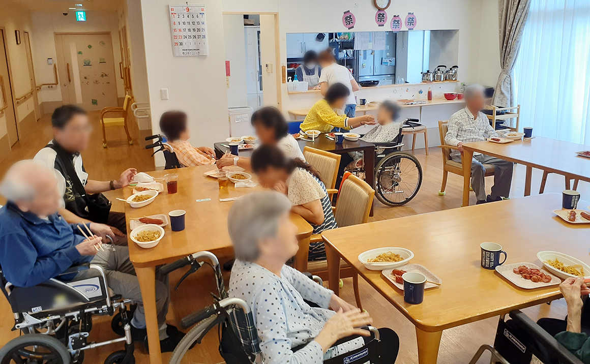 9月23日に秋祭りを実施致しました。 約2年ぶりにご家族様もイベントにご参加して下さり、 賑やかな楽しい雰囲気の中、フランクフルトや焼きそばをたくさん召し上がられました。 たのしい家出屋敷は随時施設見学やご入居者様の面会を受け付けておりますのでお気軽にお問い合わせください。