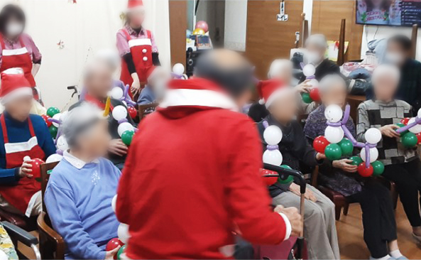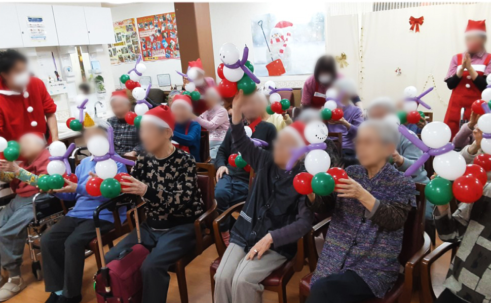 今回はボランティアのバルーンアートの方をお招きして、ご利用者様と一緒にスノーマンを作りました。