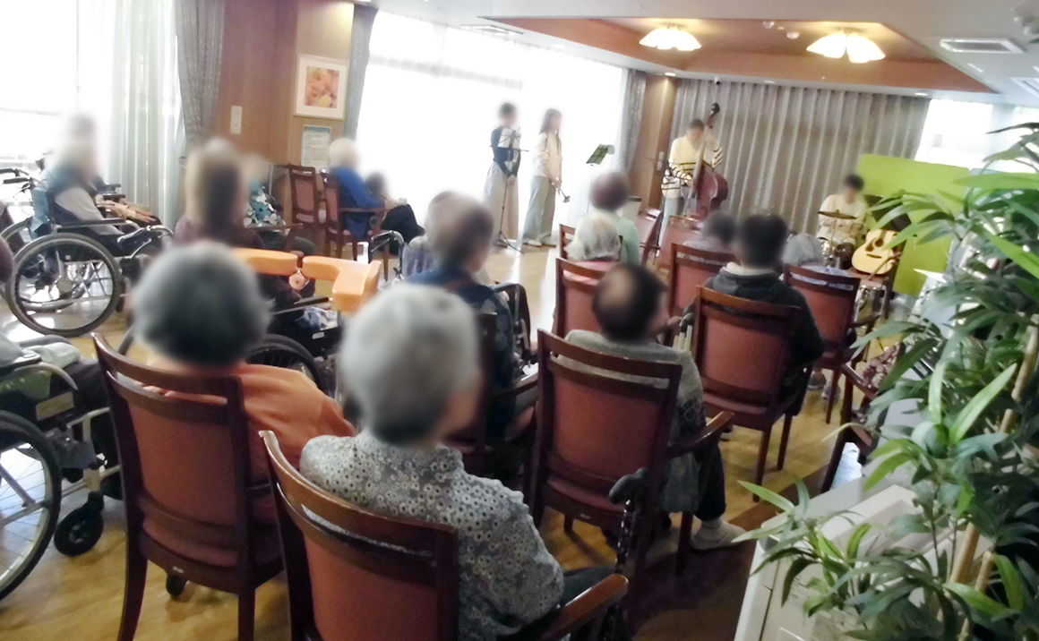 ご入居者様も学生の方たちのジャズを聴きながら、リズムに乗って楽しまれておりました。
