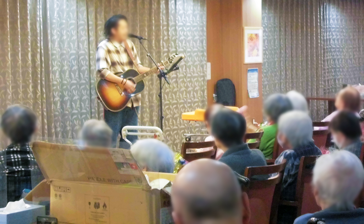 プレザングラン台東谷中では、歌手の小久保隼さんのコンサートイベントを 行いました(^^♪ ご入居者様もコンサートに大勢参加され一緒に歌われ楽しまれておりました。