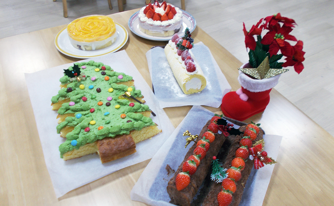 おやつには職員がクリスマスケーキを手作りしていただきました。