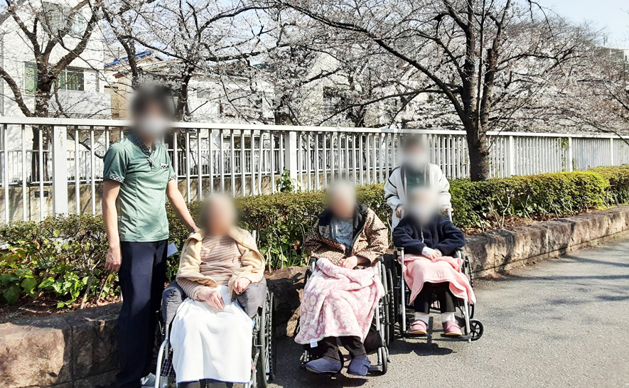 今年もお花見に出かけました。 近隣のせせらぎの里公園や神田川沿いを、車いすの方も徒歩の方もそれぞれのペースでゆっくりと散策しました。 「きれいね」「外に出ると気持ちがいいね」といった声も多く聞かれ、皆さま自然と笑顔に。 春の訪れを五感で感じていただけるひとときとなりました。