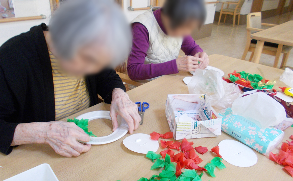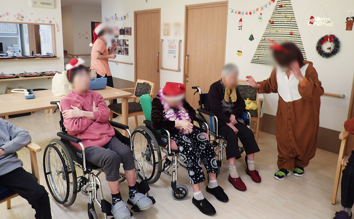 12月は各ユニットでクリスマス会を開催しゲームをしたり大きなケーキを皆さんで食べられていました。