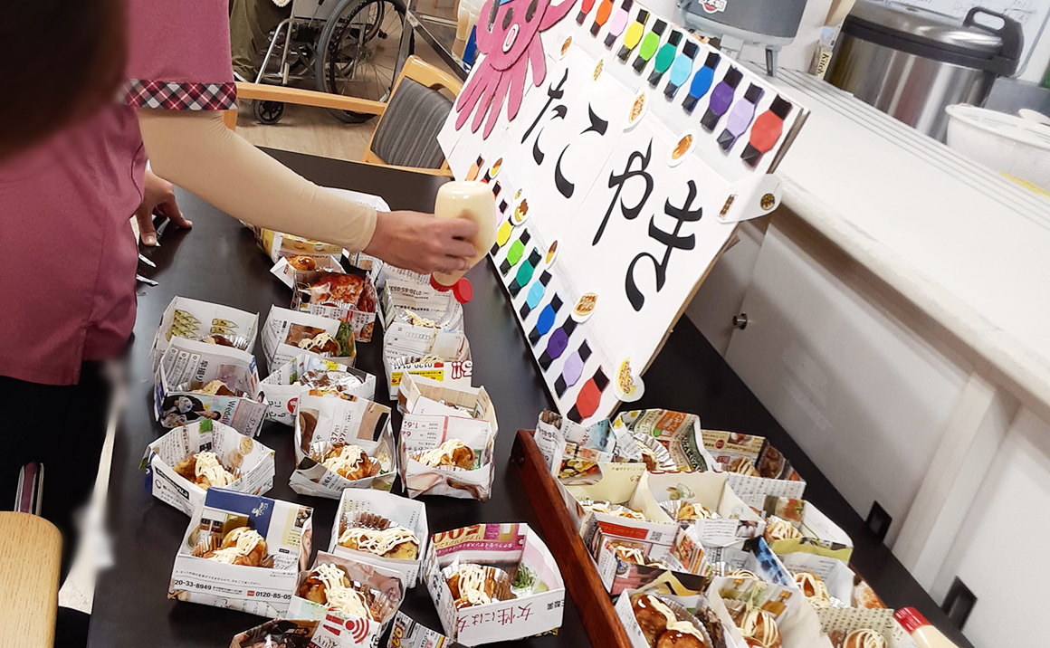 昼食では屋台風メニューを提供し、スタッフ手作りのたこ焼きも美味しく頂きました。