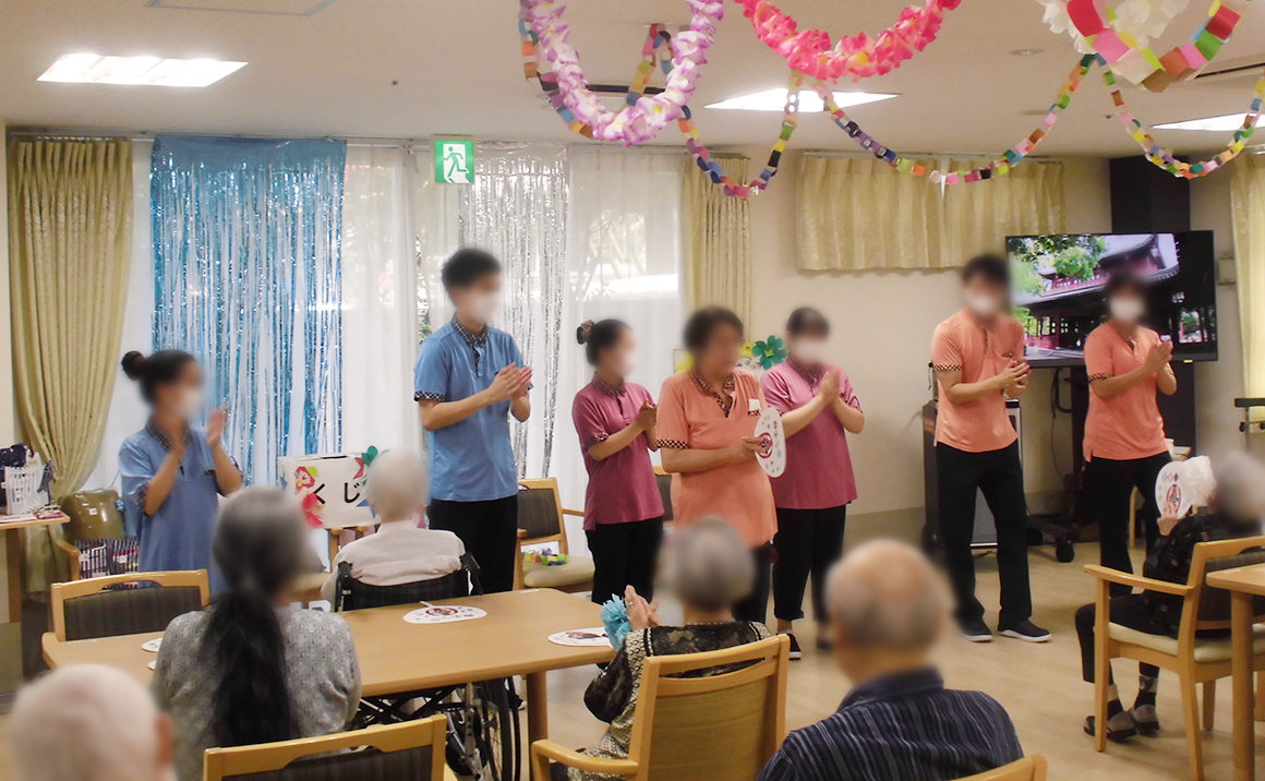 年に一度の夏を楽しむイベントな為、入居者様には「夏らしさ」を味わってもらいたいと強い気持ちからスタッフ全員で企画しました♪