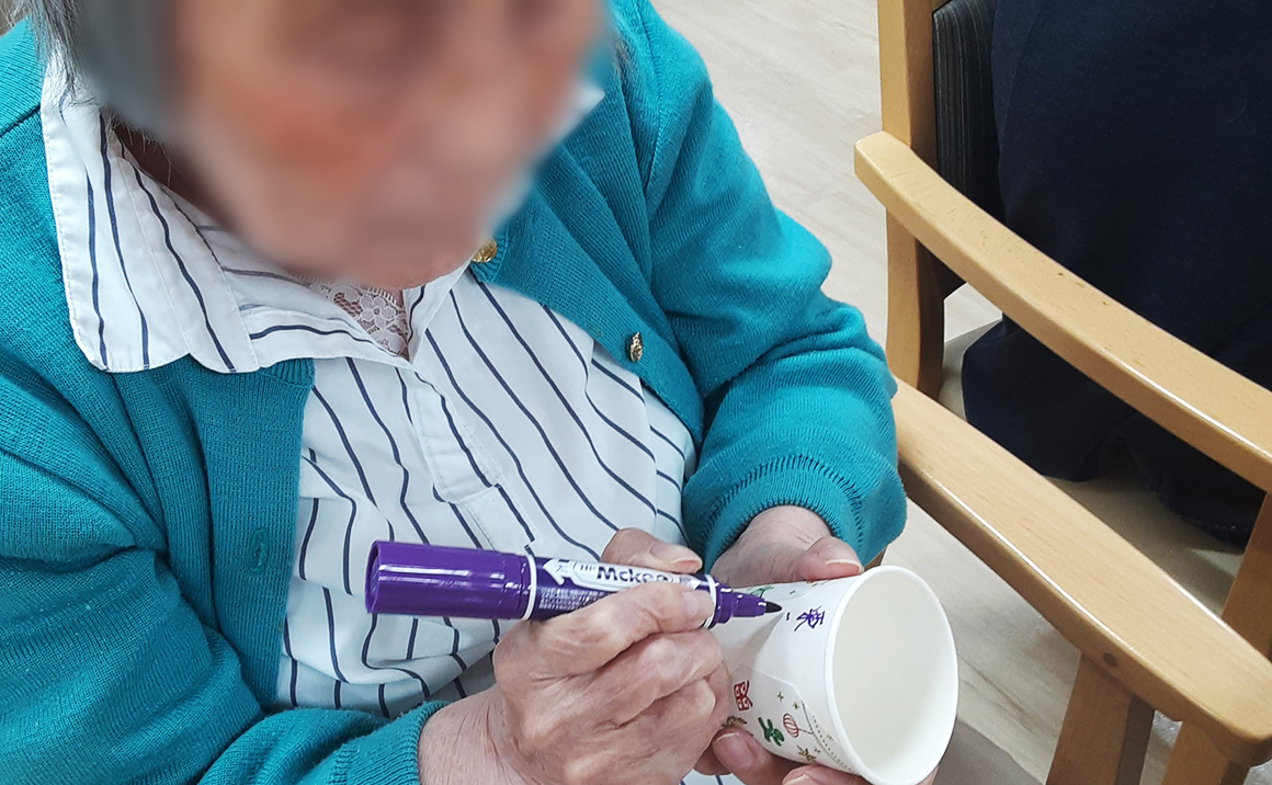 プレザンメゾン笠寺では14日に工作レクリエーションを行い、来月のクリスマス会に向けて手作りの楽器を作成しました。