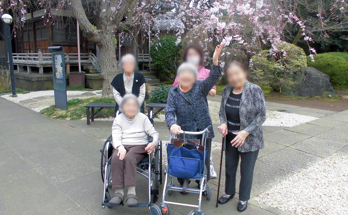 古の著名人が眠られる「谷中霊園」横に位置しております。近年、「谷根千ブーム」の中、世界各国の観光客が途絶えない、賑やかな地区ですが、施設周辺は、非常に閑静で、野鳥や珍獣もやってくるような環境下のもと、「安心・安全でたのしいご自宅」を54名様に提供させていただいております。幅広い年代のスタッフによる、心温まるサービスを心掛けており、いつも笑顔の絶えない施設です。玄関には、昭和43年式「すばる360」も一員としてお出迎え致します。