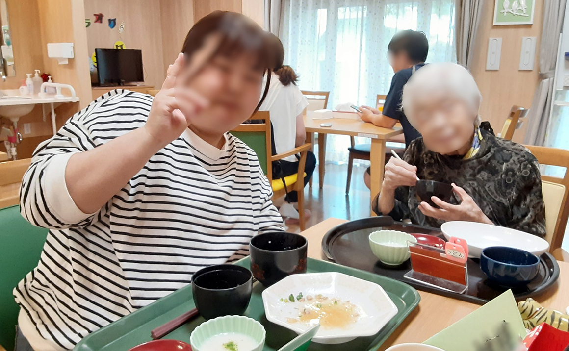 施設から徒歩1分の場所には、散歩に適した旧中川の遊歩道があり、春には桜が綺麗に咲くので気分転換を図ることができます。ご家族様や知人の方からも面会がしやすいと大変ご好評を頂いております。グループ会社スタッフが作る“作りたての美味しく温かいお食事” を提供させていただいております。朝食は和食・洋食から選べ、昼食は主菜4種からその日の気分によりその場でお選び頂けます。栄養士によるバランスのとれた献立をもとに、シェフが心を込めて毎食お作りいたします。作りたての美味しく温かいお食事をお好みで選んでお召し上がりいただけます。共有スペースにおいては、様々な趣味活動を行い、ご入居者様同士の賑やかなひとときを提供させていただきます。出来ることを増やして頂き、活動を通して達成感や生きる喜びを感じていただきます。午前中にはラジオ体操、午後には集団機能訓練を定期的に行い、心身の機能向上を図っております。