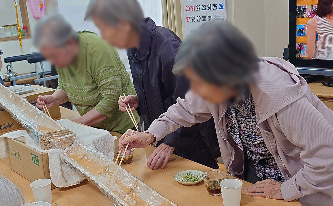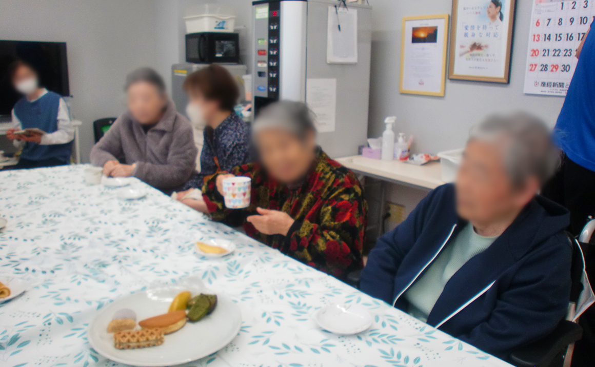 穏やかな時の流れるたのしい家です。認知症ケアの専門スタッフが、我が家と思っていただけるよう心のこもったサポートをさせて頂いております。スタッフもお茶の美味しい入れ方、キャベツの千切り、煮物の味付け等教えて頂く事が沢山あって、一緒に暮らしているという言葉がピッタリです。同じ時代を過ごされた皆様が懐かしい歌を唄ったり、楽しく昔を語れます様に、そっと声をかけたりお手伝いをさせて頂いております。常にご入居者様の"たのしい""自分らしい" 暮らしを支援し、お互いに助け合いながら自立した生活が営まれるようにサポートいたします。
