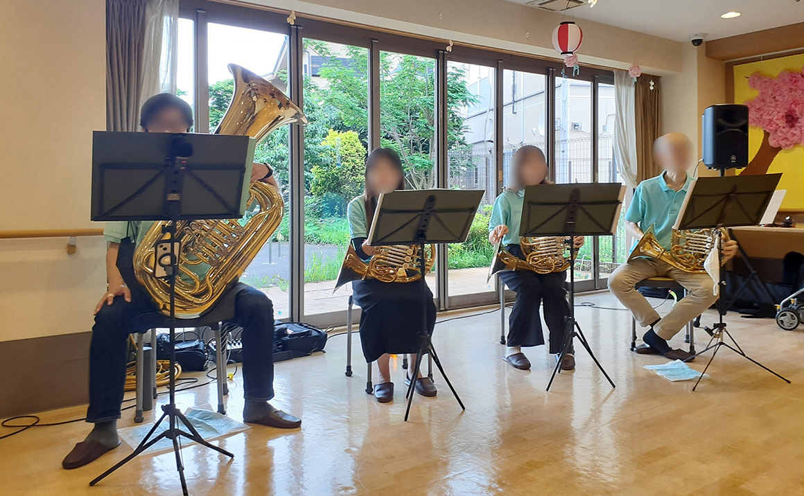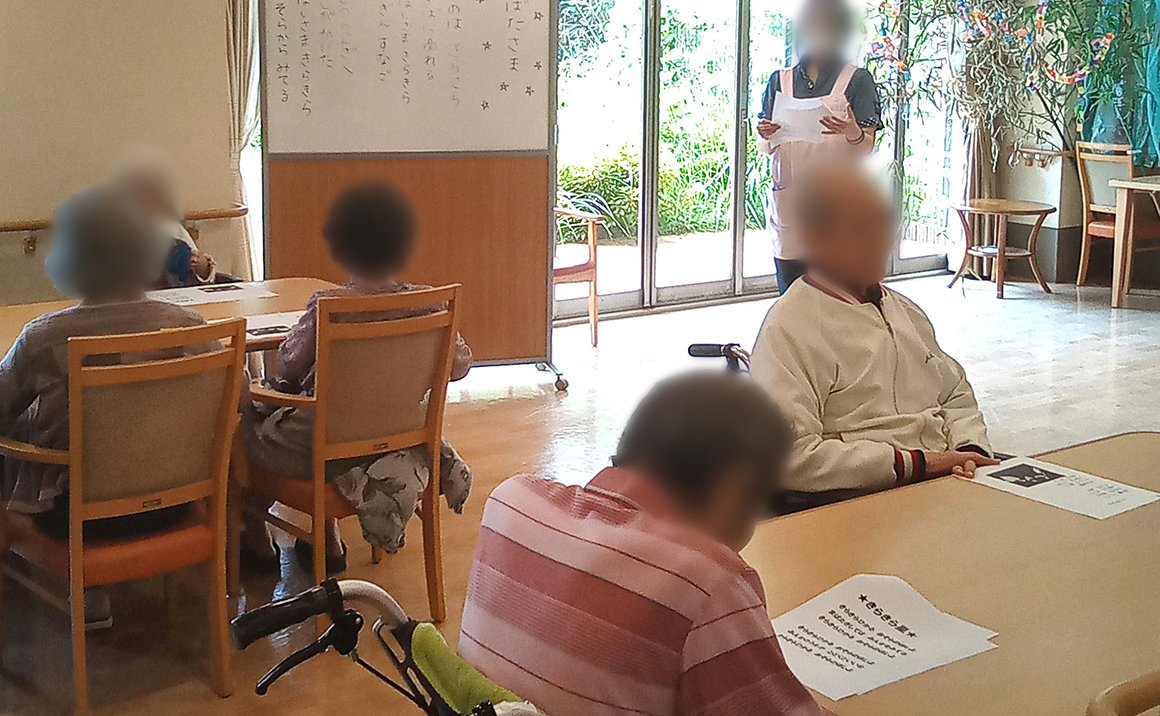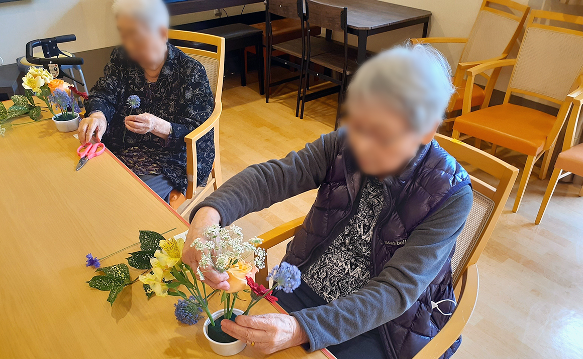 毎月の行事では、季節感を感じていただける行事の実施はもちろんのこと、その他にもファミリーコンサートや、日帰り旅行など、様々な活動のご提案を行っております。ドッグトレーニングセンターから介助犬を招き、触れ合っていただくドッグセラピーや、フラワーアレンジメントなども実施し、飽きの来ない活動を心掛けております。