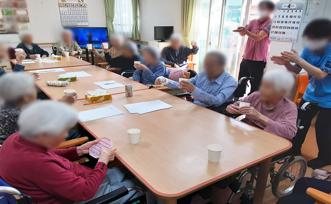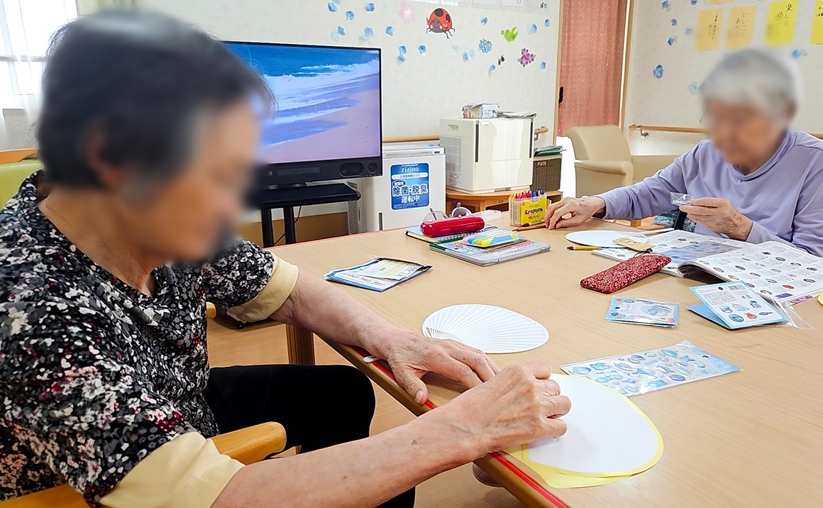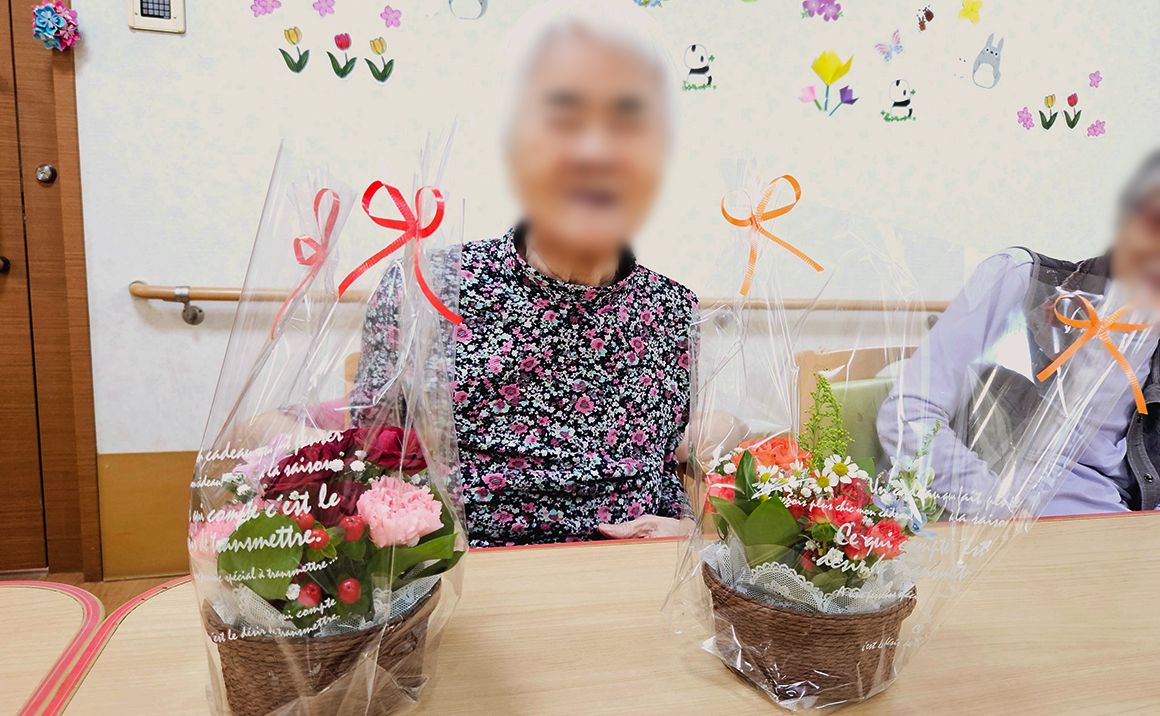施設内での活動だけでなく、外出する機会を増やす活動を行っております。出来る限り天候の良い日は、お買い物やお散歩での外出を通して、リフレッシュしながら楽しんでいただいております。ご入居者様が自立した生活が出来るようにケアを行っており、1人1人出来る事をスタッフが観察し、家事全般・洗濯物たたみ・園芸を行って頂き、役割を持って頂いております。心地よく時間を過ごせるウッドデッキを備えたり、花壇や家庭菜園なども設け、ご入居者様と一緒に野菜を育てています。収穫時期には、菜園から収穫された野菜も食卓を賑わせます。日々の生活の中で健やかな身体の維持・向上を目指しています。ご入居者様が役割をどうすれば楽しみながら続けられるか、創意工夫と試行錯誤を行いながらサポートしています。