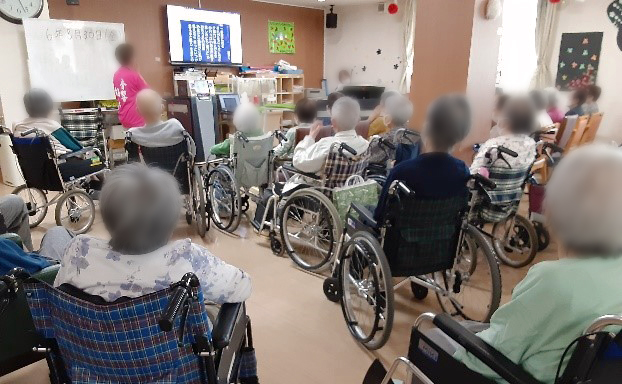 京成実籾駅南口右手へ進んで、歯科医院とコインパーキングの間の道を進みますと施設が見えてきます。駅より徒歩3分という好立地の場所にあります。実籾商店街道路より一本内側に施設がある為、駅近とは思えないほど、とても静かで穏やかな場所です。当ホームでは、ボランティアやレクリエーションの充実を図っております。大正琴・童謡(歌)・太鼓等様々なボランティアが月に1度以上こられてます。イベントでは、夏祭り・文化祭・敬老会など行い、ご入居様者・ご家族様・スタッフとみんなでたのしくイベントを開催しております。夏の期間は、スタッフがアロハシャツを着て業務にあたらせて頂いております。ご入居者様・ご家族様に、とてもご好評いただいております。「たのしい」を生み出す施設でありたいと、職員一同明るく・元気にお手伝いをさせて頂いております。ご入居者様に、ご満足いただけるサービスを提供いたします。