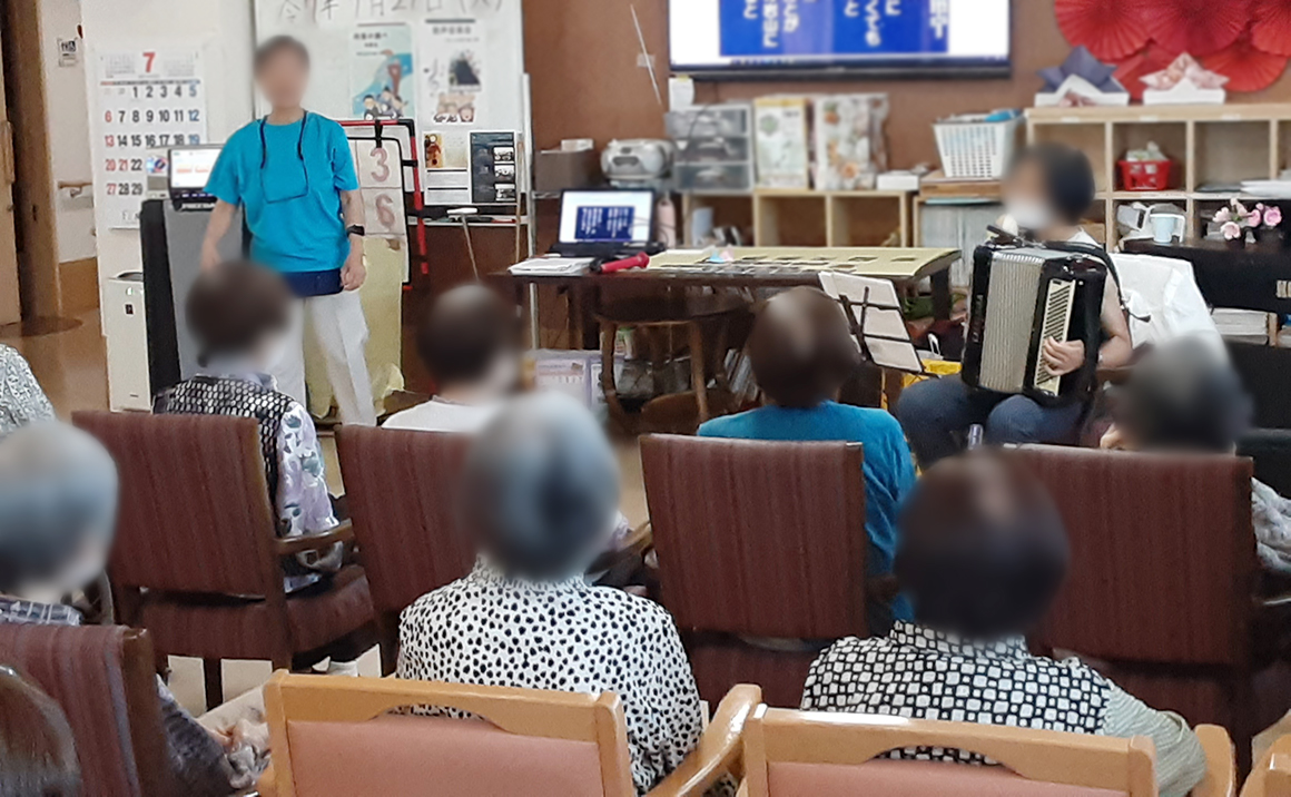 京成実籾駅南口右手へ進んで、歯科医院とコインパーキングの間の道を進みますと施設が見えてきます。駅より徒歩3分という好立地の場所にあります。実籾商店街道路より一本内側に施設がある為、駅近とは思えないほど、とても静かで穏やかな場所です。当ホームでは、ボランティアやレクリエーションの充実を図っております。大正琴・童謡(歌)・太鼓等様々なボランティアが月に1度以上こられてます。イベントでは、夏祭り・文化祭・敬老会など行い、ご入居様者・ご家族様・スタッフとみんなでたのしくイベントを開催しております。夏の期間は、スタッフがアロハシャツを着て業務にあたらせて頂いております。ご入居者様・ご家族様に、とてもご好評いただいております。「たのしい」を生み出す施設でありたいと、職員一同明るく・元気にお手伝いをさせて頂いております。ご入居者様に、ご満足いただけるサービスを提供いたします。