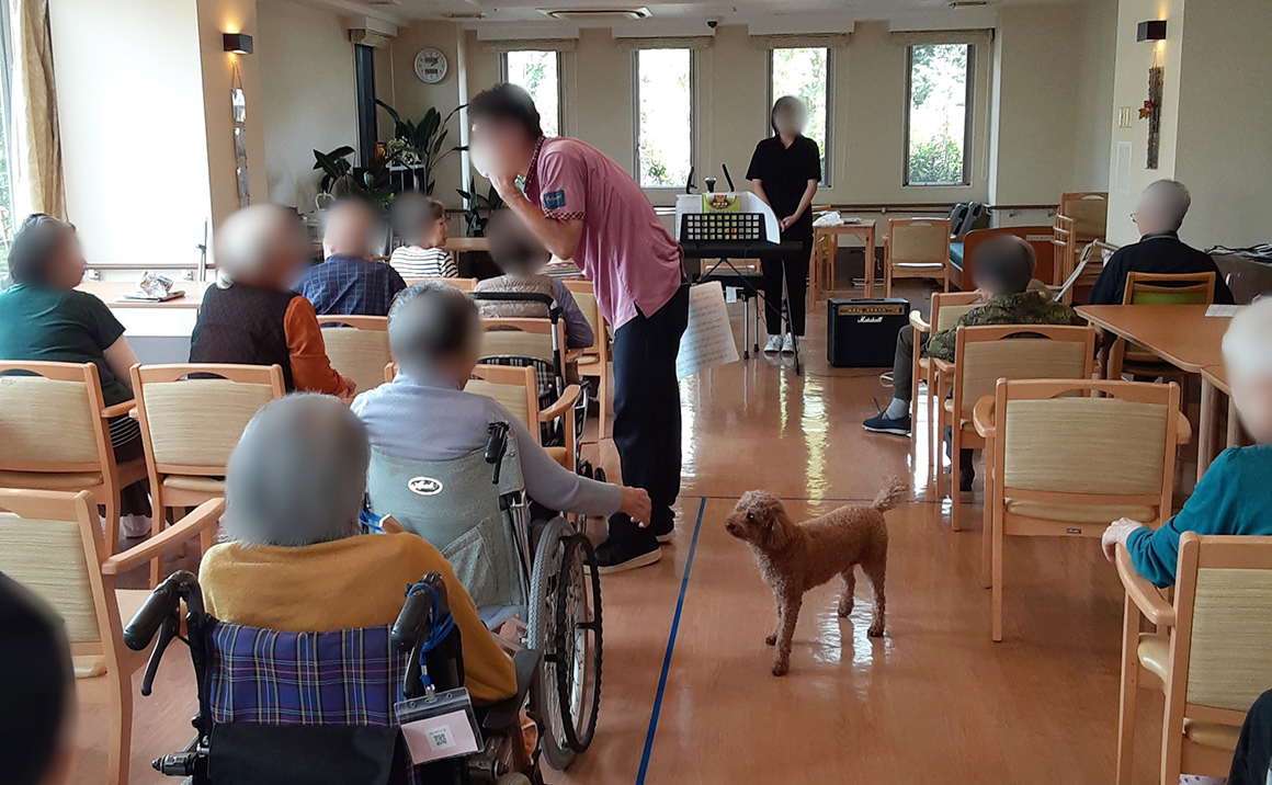 当施設では「アニマルセラピー」を積極的に取り入れております。当施設の看板犬「コロ」はとても人に慣れており、好奇心旺盛だけどちょっぴり寂しがりやなので、ご入居の皆さまも積極的に触れ合っていただき、自然と笑顔がこぼれる毎日をお過ごしいただいています。