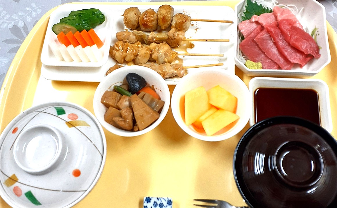 毎日の食事は、施設内に併設されたグループ会社の「美味しい料理」が提供していおり、つくり立てのものを提供しております。選択食を導入し、レストランのようにお好みの食事を選択して召し上がって頂いております。グループ会社なので日々の食事やイベント食などでも、お互いに意見がいいやすく、ご入居者様の好みに合わせた個別の食事提供に努めています。