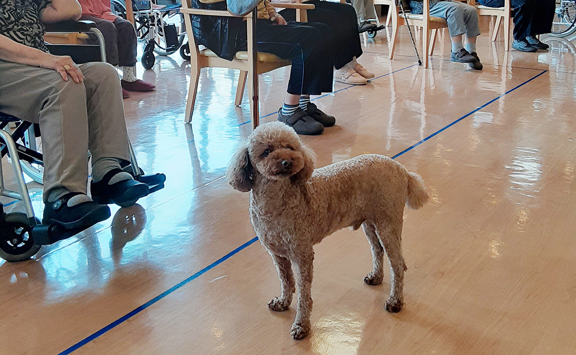 当施設では「アニマルセラピー」を積極的に取り入れております。当施設の看板犬「コロ」はとても人に慣れており、好奇心旺盛だけどちょっぴり寂しがりやなので、ご入居の皆さまも積極的に触れ合っていただき、自然と笑顔がこぼれる毎日をお過ごしいただいています。