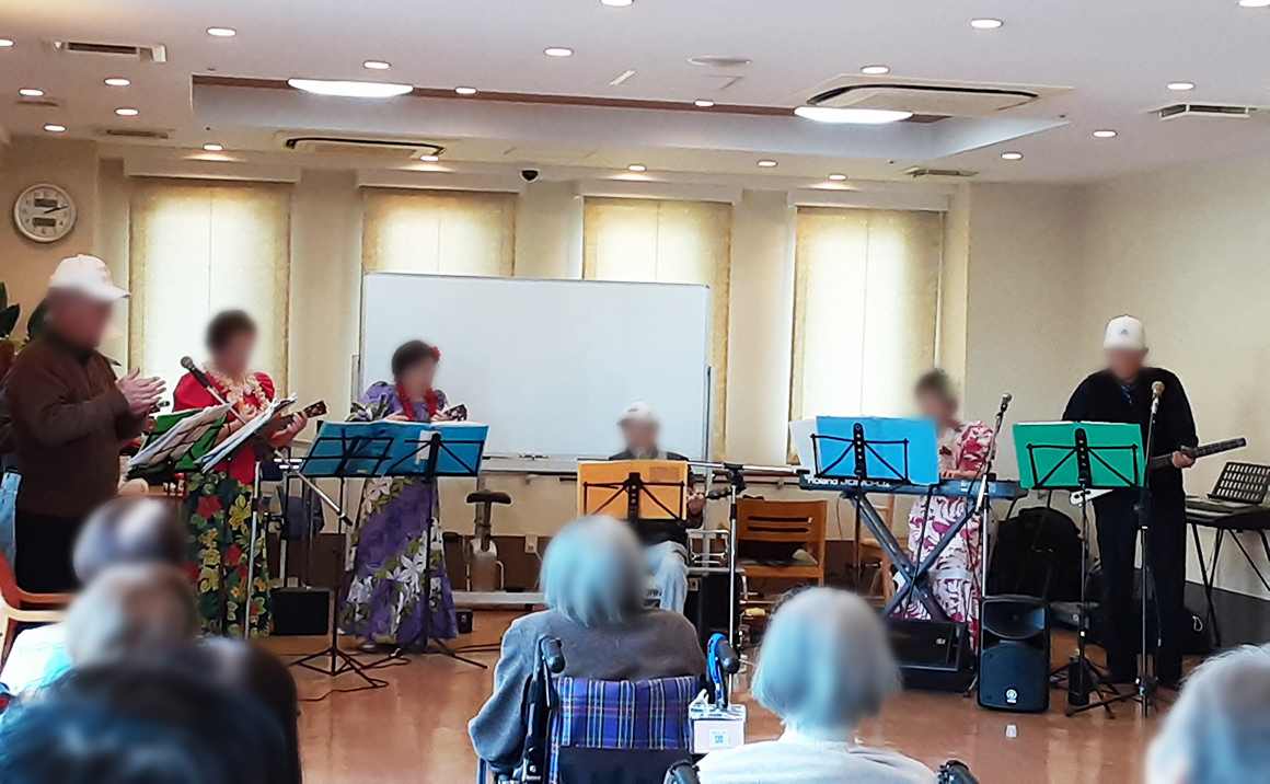 当ホームでは、[ いきいき活動 ] をテーマにし、リハビリ活動・サークル活動・外出イベントを行っています。ホームでの生活というと閉鎖的なイメージがありますが、そうではなく、外出や外食、地域とのつながりなどを積極的に行うことで、ご入居者様一人一人の可能性や、こうしたいという想いに応えていきたいと思っています。近隣の公園や公共施設でのイベントに参加したり、年2回の日帰り旅行を実施しております。