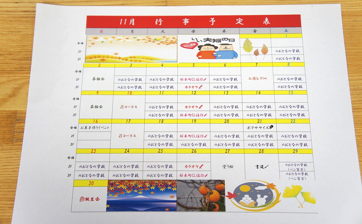 当ホームでは、個別リハビリ・集団リハビリに力を入れております。又、医療との連携を密ししており、美味しいお食事、イベントなどを通し、皆様が笑顔でたのしくお過ごしいただけるよう支援しております。スタッフがご入居者様のご要望をじっくり伺うことから始め、日々ご入居者様と接する中での「気づき」を大切にすることで、ご入居者様が自分らしく過ごしていただく為に必要なサービスは何かを常に模索し、ご入居者様に「入って良かった」と喜んでいただけるホーム作りを目指しております。サークル活動(コーラス部・園芸部・手芸工作・英会話など)もご入居者様の趣味をお聴きして、たのしんで頂ける活動をしております。また、ご入居者様参加型のイベントも開催しており、納涼祭やひな祭りなども、準備段階からお手伝いして頂きながら、自分たちが企画したイベントだと実感して楽しんでいただく事を大切にしております。半年に1回、バス旅行ツアーも開催しており、ご家族様も同行できる旅行となっております。ゆとりのある施設介護をご提供しておりますので、 自然に囲まれたホームだからこそ可能なケアをご実感いただけます。